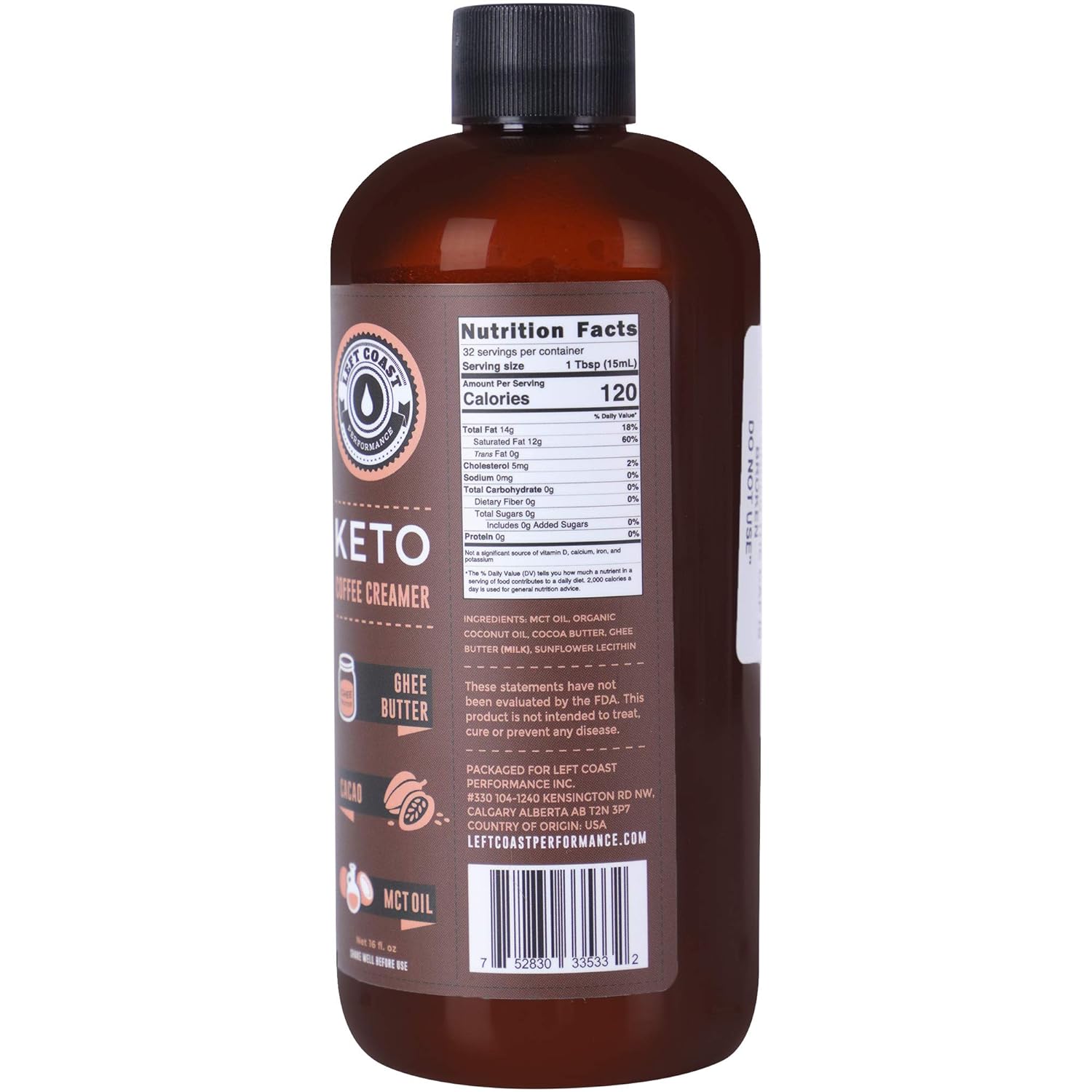 Keto Coffee Creamer With Mct Oil, Ghee Butter, Cocoa Butter, 16Oz / 32 Servings. Must Blended. No Carb Keto Creamer For Coffee Booster. Unsweetened, Ketogenic, Low Carb By Left Coast Performance