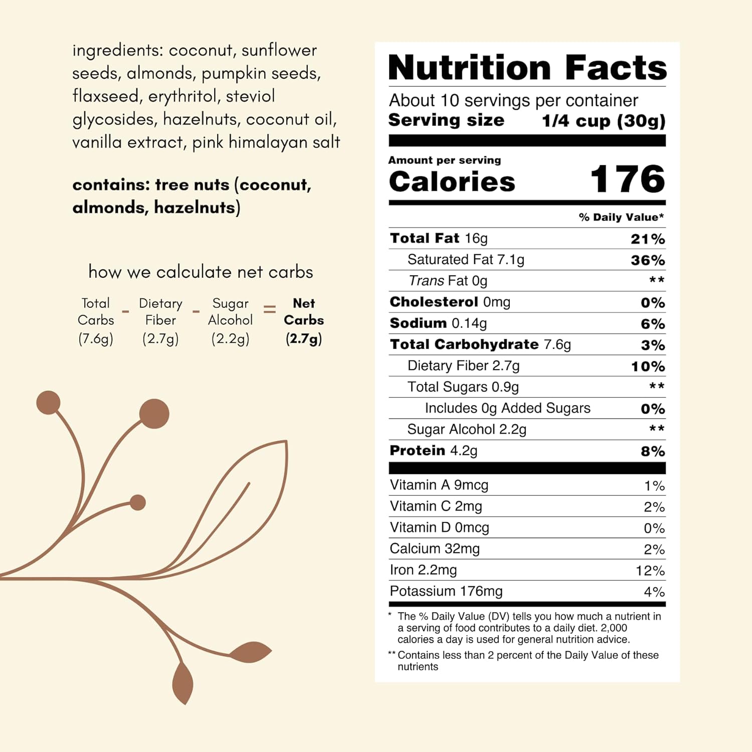 Your order will include one (1) bag of ultra low carb, high protein, game changing and incredible tasting keto granola from keto hana. the perfect, effortless keto breakfast cereal