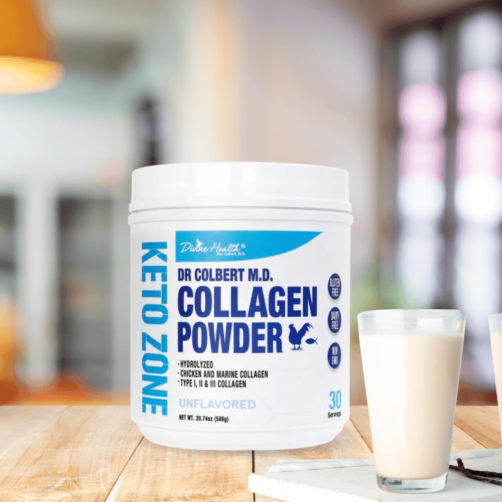 Keto Zone Dr. Colbert Md Hydrolyzed Collagen Powder | Unflavored | By Divine Health | Chicken & Marine Collagen Peptides | Hair, Skin And Nails Support