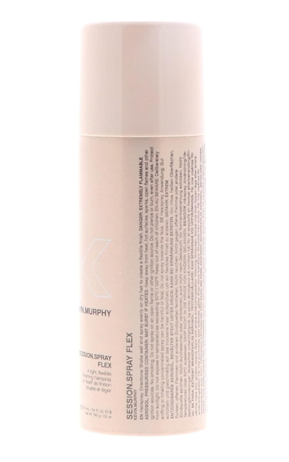 About this item Flexible Hold Finishing Hair Spray: SESSION.SPRAY FLEX is a premium styling spray that delivers a flexible, lightweight and long-lasting hold for all hair types Humidity Resistant Hair Care: Achieve a flexible, non-greasy finish with SESSION.SPRAY, perfect for flexible, weightless hairstyles that defy humidity Hair Styling Botanicals: Formulated with our botanical Elasticity Blend, this hair spray offers elasticity, smoothness and moisture of the hair Flake-Free Hair Spray: Brushes out easily and effectively without a trace of flakiness; hair care treatment is sulphate free, paraben free and cruelty free About KEVIN.MURPHY: KEVIN.MURPHY products provide the tools to recreate high-fashion runway looks in the salon or at-home, while always remaining kind to the environment See more product details,Flexible Hold Finishing Hair Spray: SESSION.SPRAY FLEX is a premium styling spray that delivers a flexible, lightweight and long-lasting hold for all hair types,Humidity Resistant Hair Care: Achieve a flexible, non-greasy finish with SESSION.SPRAY, perfect for flexible, weightless hairstyles that defy humidity,Hair Styling Botanicals: Formulated with our botanical Elasticity Blend, this hair spray offers elasticity, smoothness and moisture of the hair,Flake-Free Hair Spray: Brushes out easily and effectively without a trace of flakiness; hair care treatment is sulphate free, paraben free and cruelty free,About KEVIN.MURPHY: KEVIN.MURPHY products provide the tools to recreate high-fashion runway looks in the salon or at-home, while always remaining kind to the environment