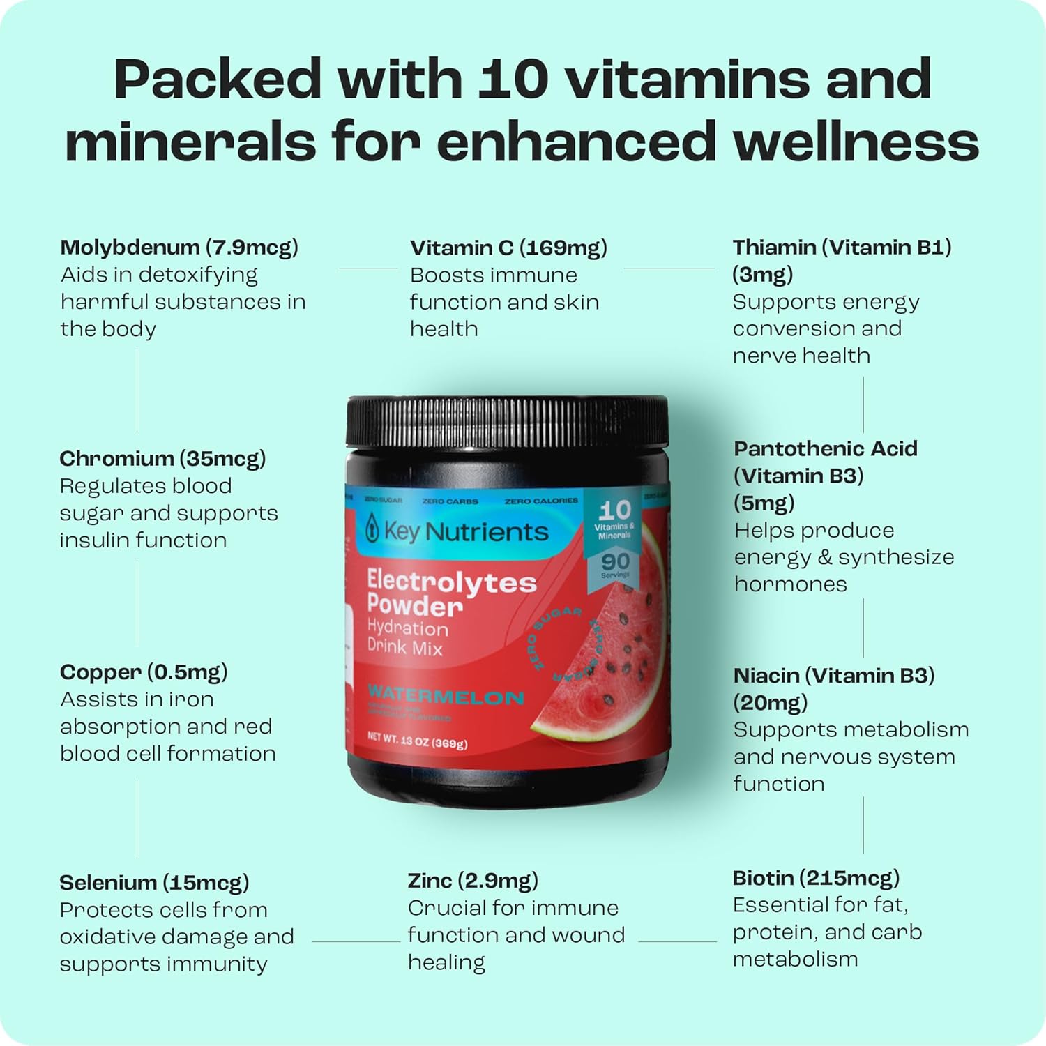 Refreshing Watermelon - Staying hydrated goes beyond just drinking water, and a delicious watermelon electrolyte powder drink is the key. Free of calories, carbs, and sugar, this electrolytes powder makes hydrating refreshing and guilt-free!