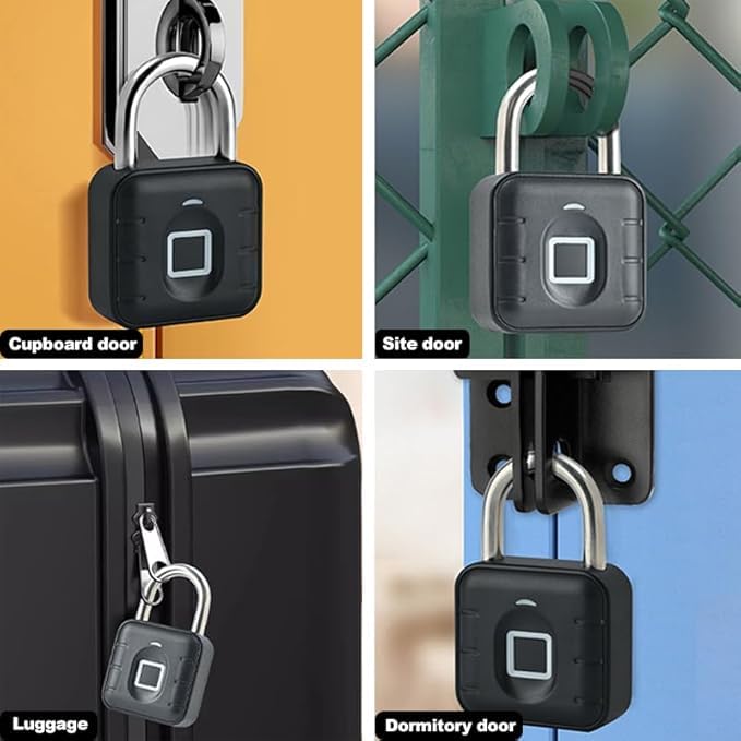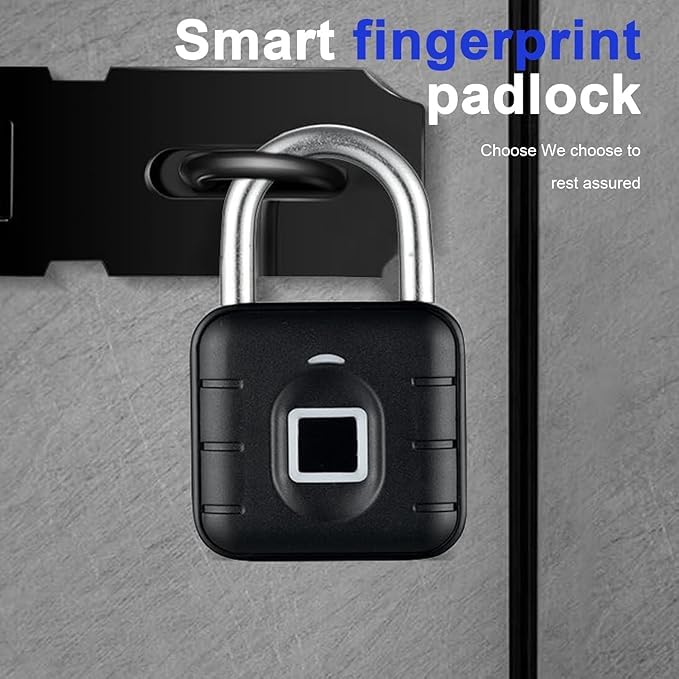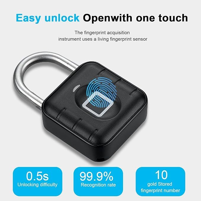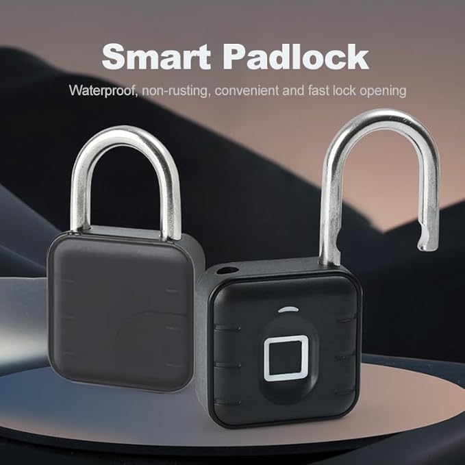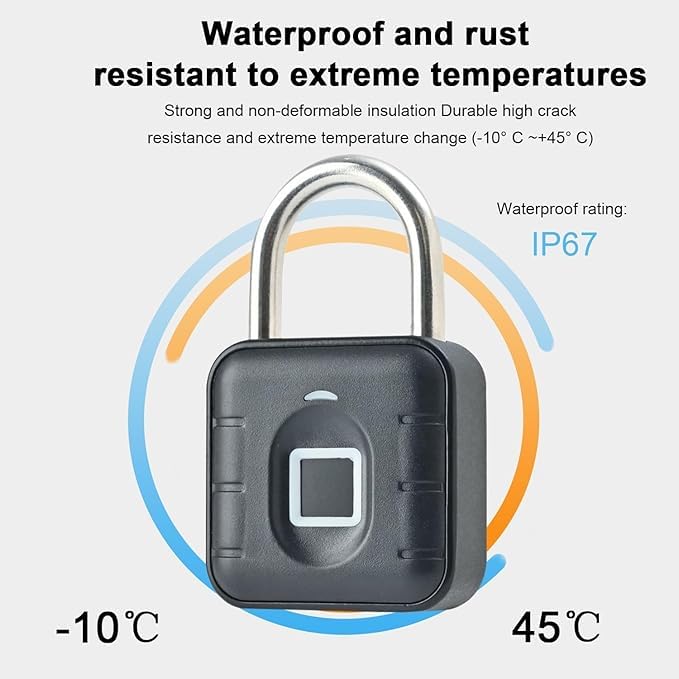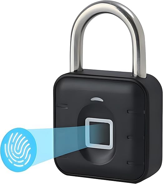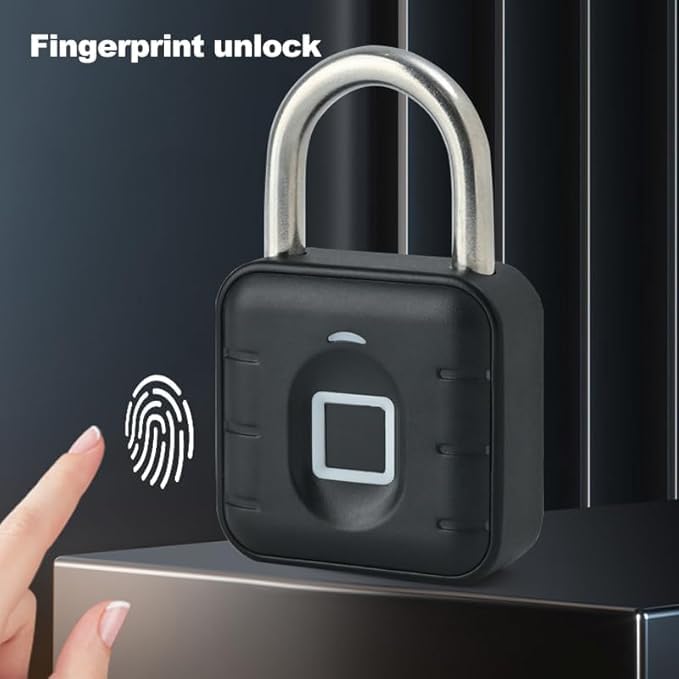 Keyless Fingerprint Padlock – Keyless, Weatherproof, and Waterproof Lock for Gym, Luggage, Lockers, Warehouses – Multi-Use Black Security Lock