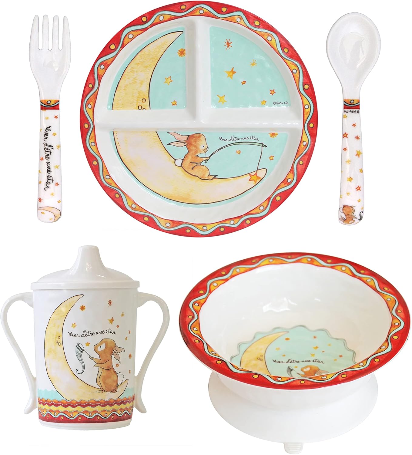 Kids And Baby Melamine Place Setting Sippy Cup, Suctions Bowl, Section Plate And Fork Spoon Set (Wish On A Star)