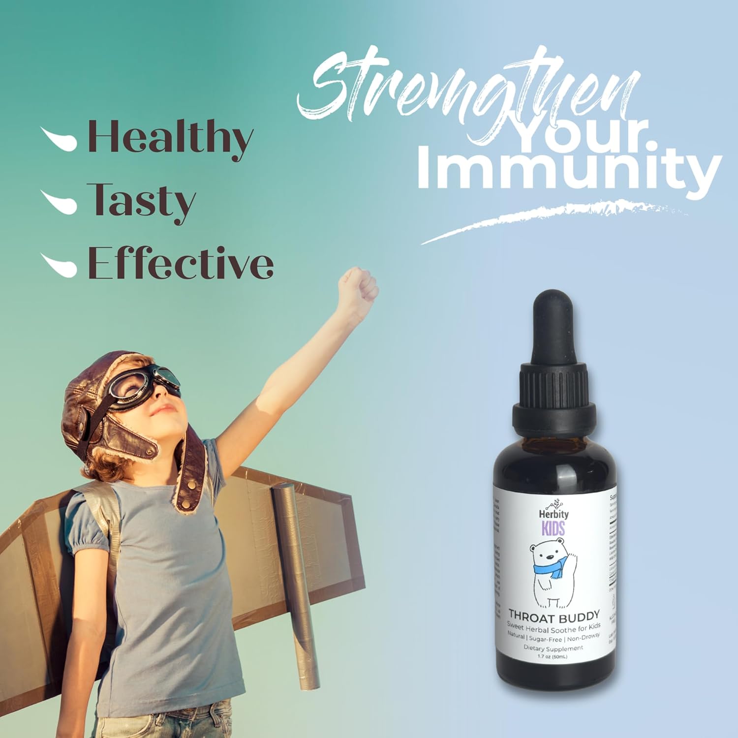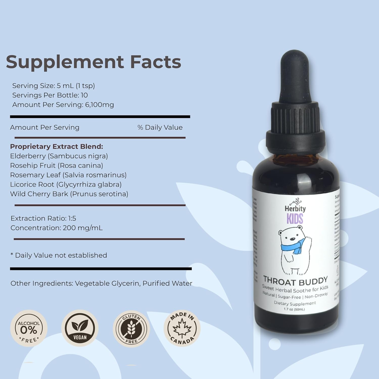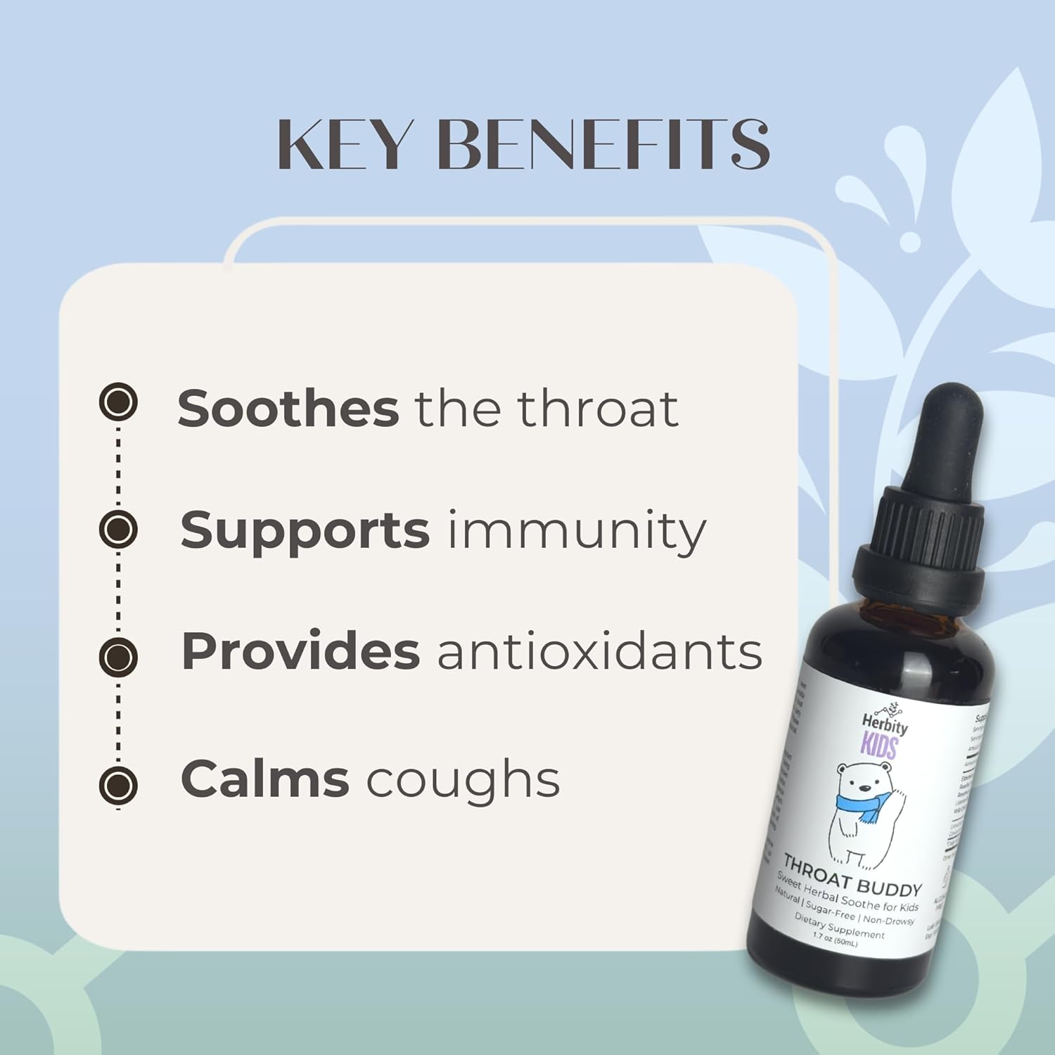 Easy-to-use liquid for kids – Mix with juice or water for a smooth herbal experience—no chewing or swallowing needed