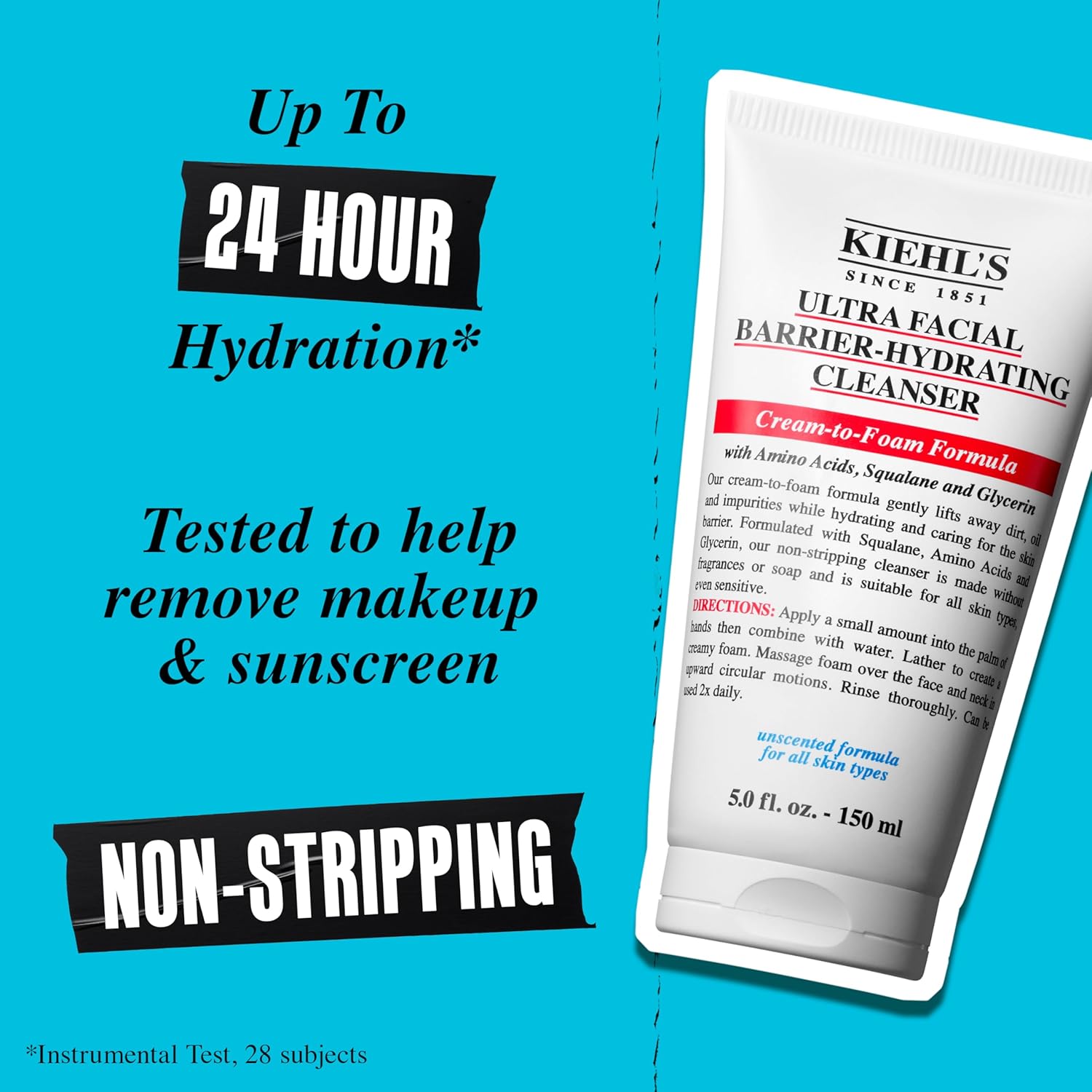 Kiehl'S Ultra Barrier Cleanser, Hydrating Cream-To-Foam Face Wash And Removes All Makeup, 150Ml