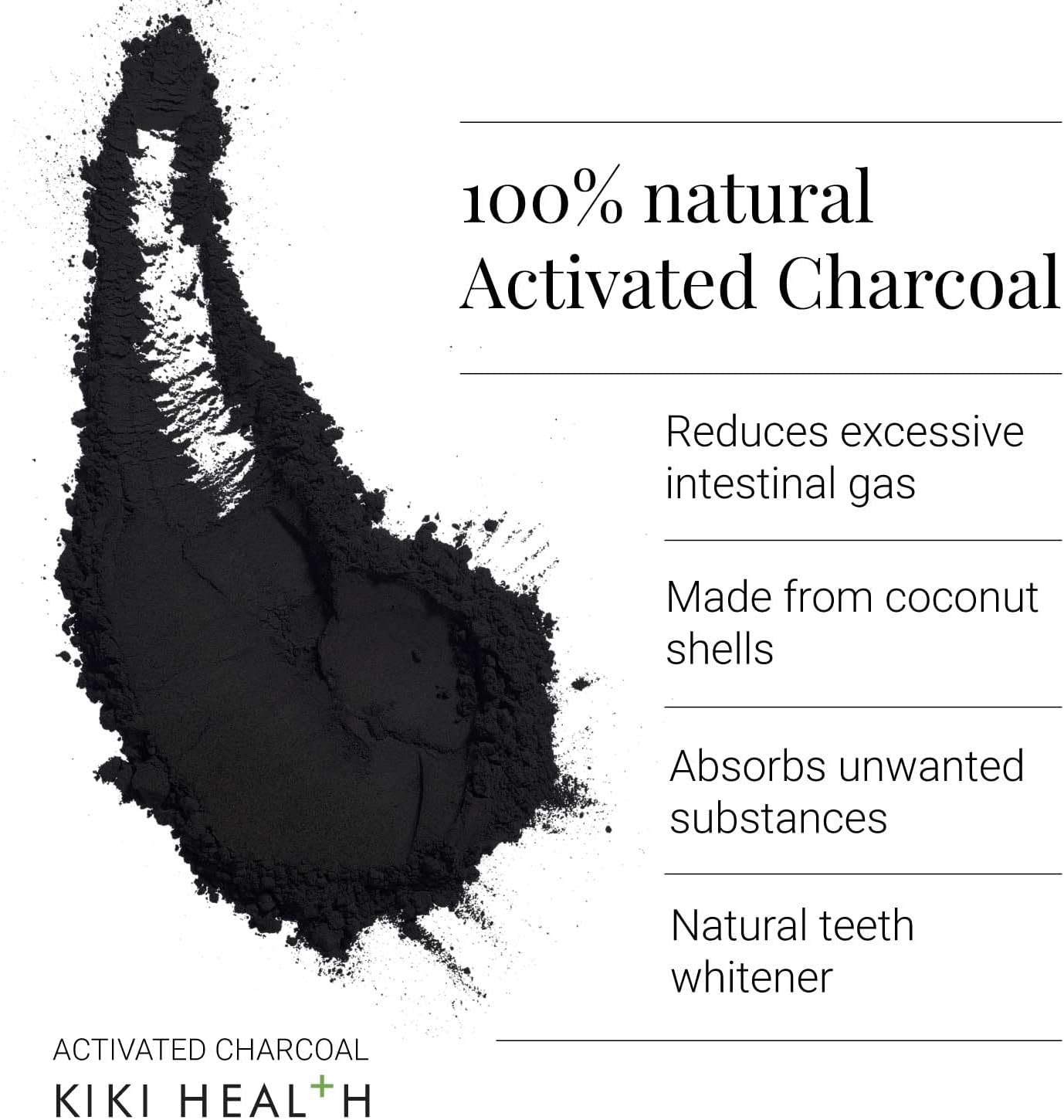 Kiki Health Activated Charcoal Powder | Teeth Whitening Made From Coconut Shells | Food Grade Detox Supplement | Natural Relief Flatulence Indigestion Body & Mind | Vegan & Gluten Free – 70G