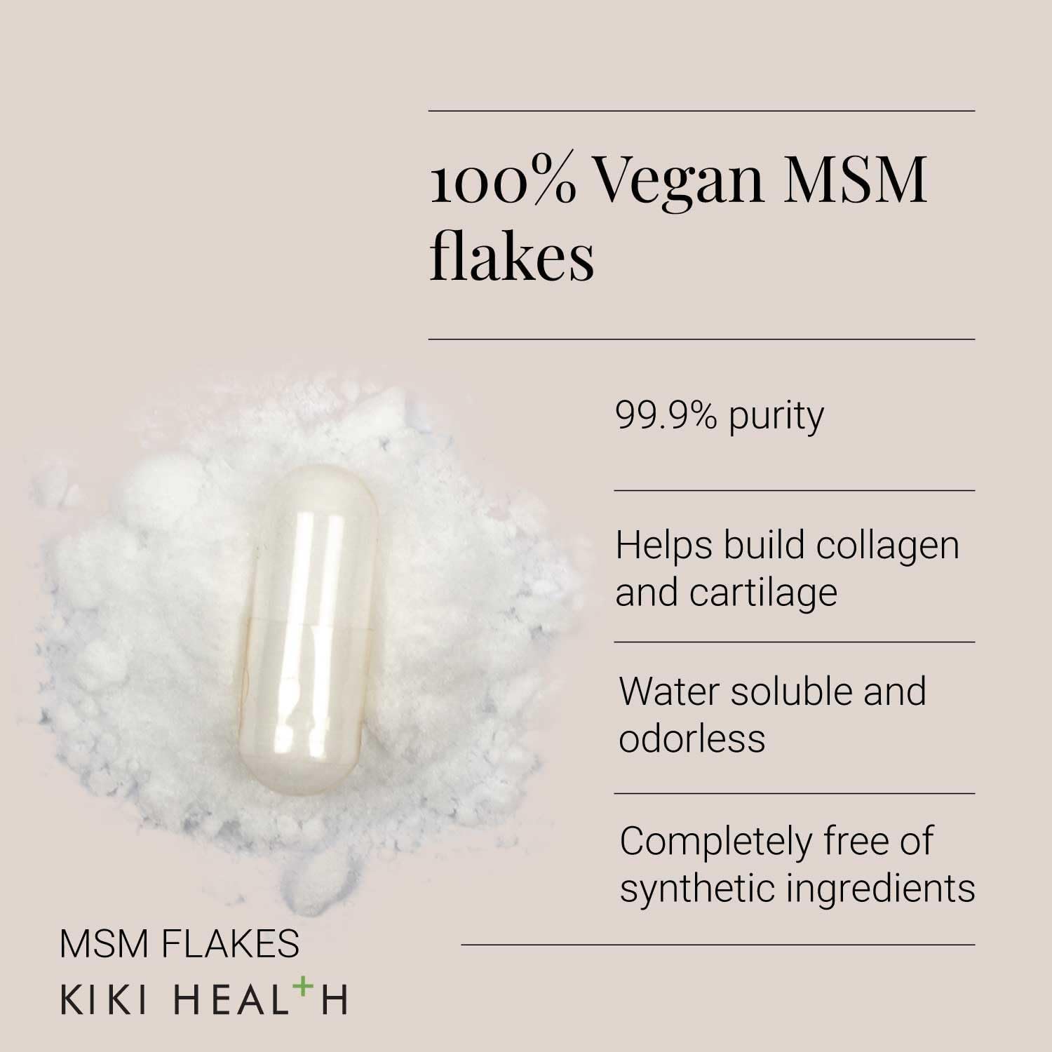 Kiki Health Natural Msm Flakes Minerals Capsules - Pure Natural Sulphur For Joints, Skin, Hair & Nails - Gluten-Free & Allergen-Free Msm Supplements - No Additives Easy Formulation - 100 Count
