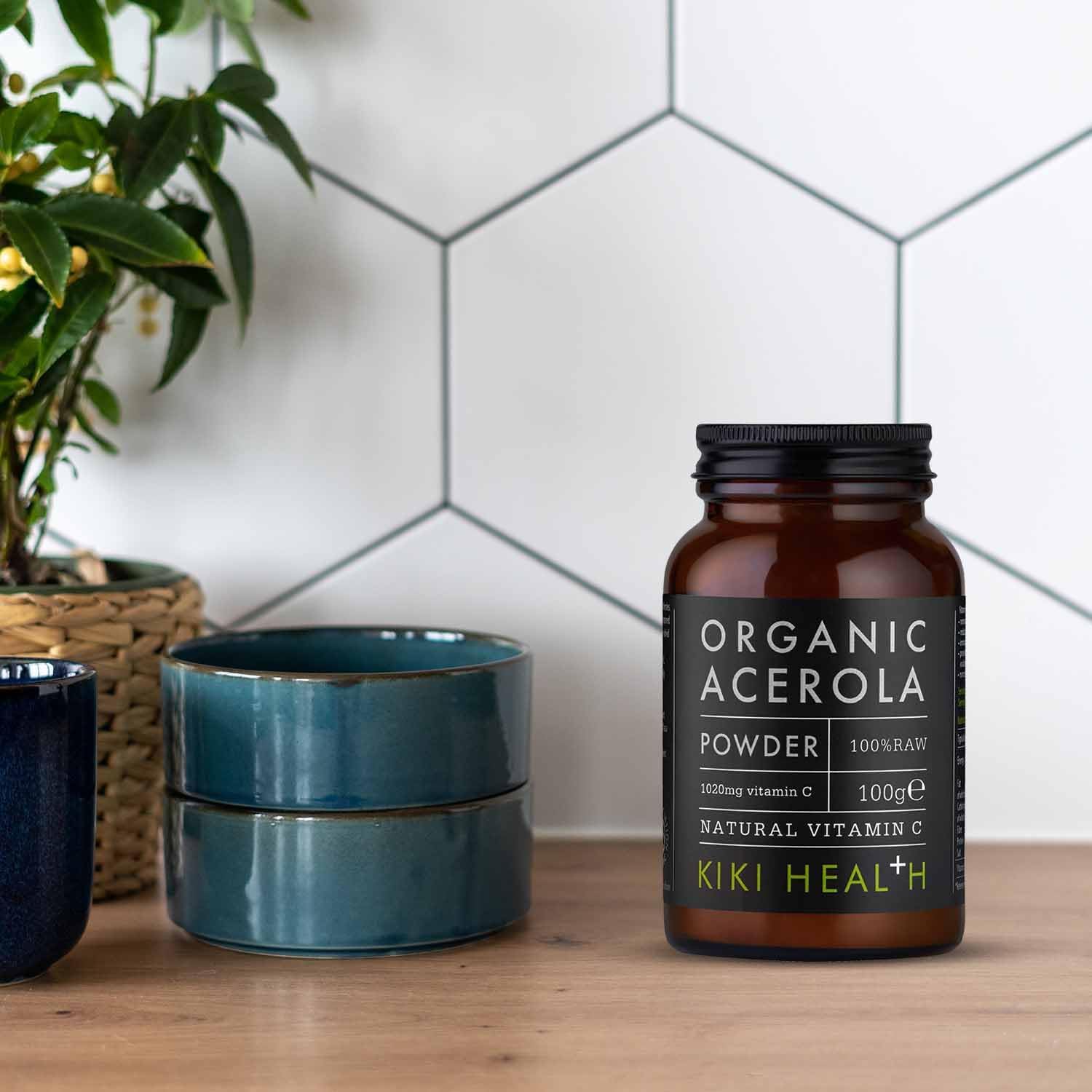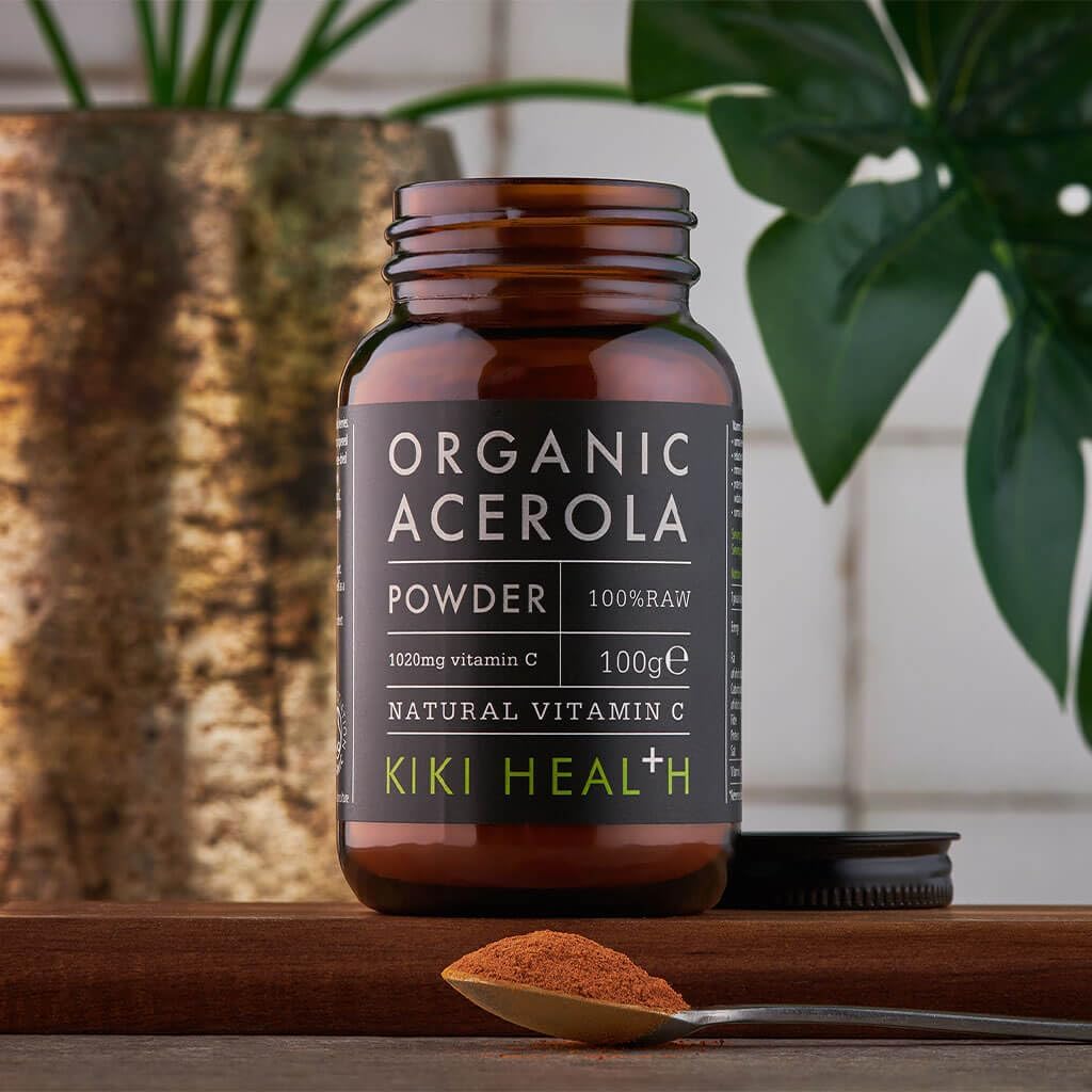 Kiki Health Organic Acerola Powder | High Vitamin C Content, Potent Antioxidant, Immune System Boost, Skin & Bones Support, Versatile & Easy To Use | Barbados Cherry Powder For Natural Wellness -100 G