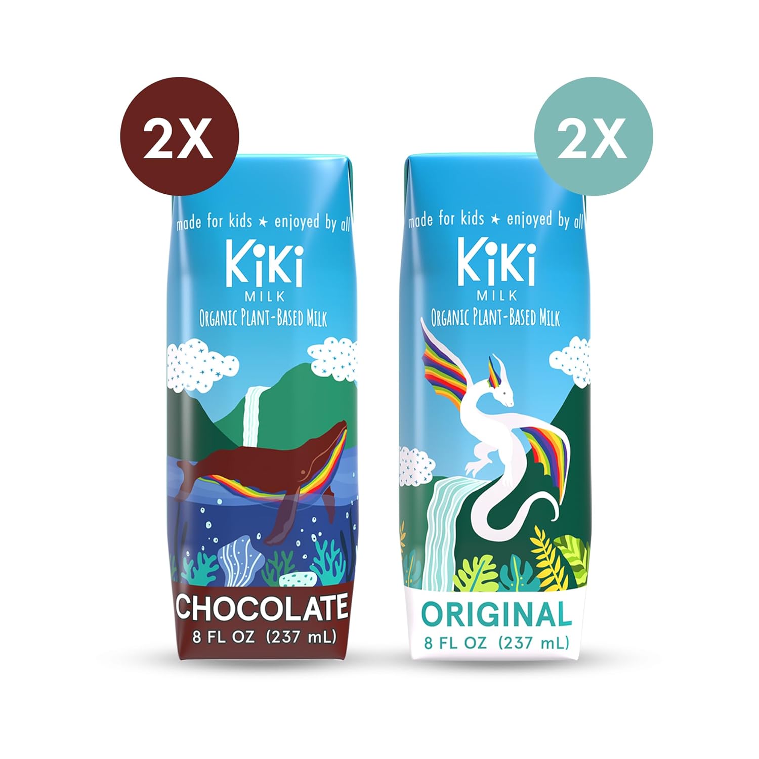 Kiki Milk Plant Based Milk - The Starter Kit - 2X Chocolate Milk 8Oz & 2X Organic Original Kiki Milk 8Oz - Calcium & Magnesium Source - Gluten, Gum, Gmo, Dairy, Soy & Glyphosate Free - Shelf Stable