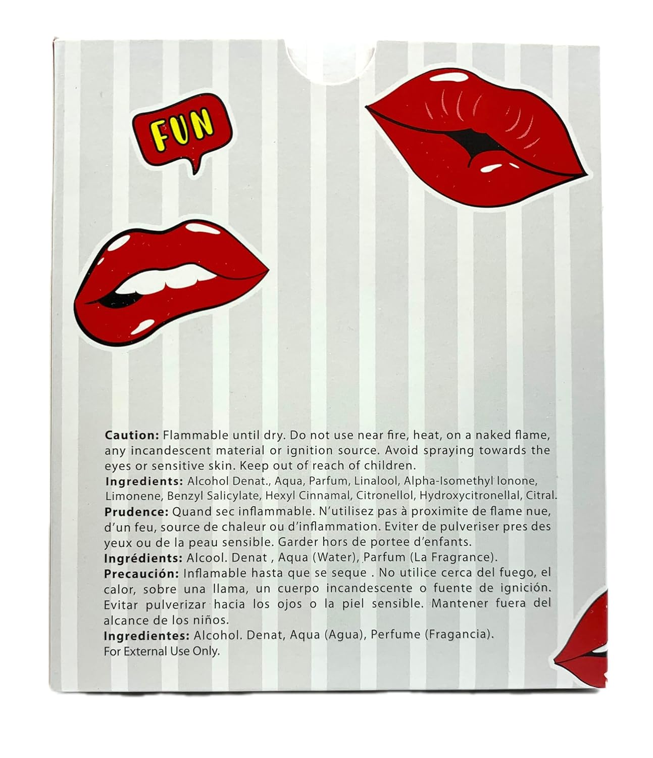 Kimberly's Kiss Me is a sweet and oriental blend of fine fragrance in an intoxicating red lip bottle. This sensual and gourmand scent opens with a mix of litchi and mandarin, blended with jasmine and white chocolate. The base consists of ylang-ylang and musk