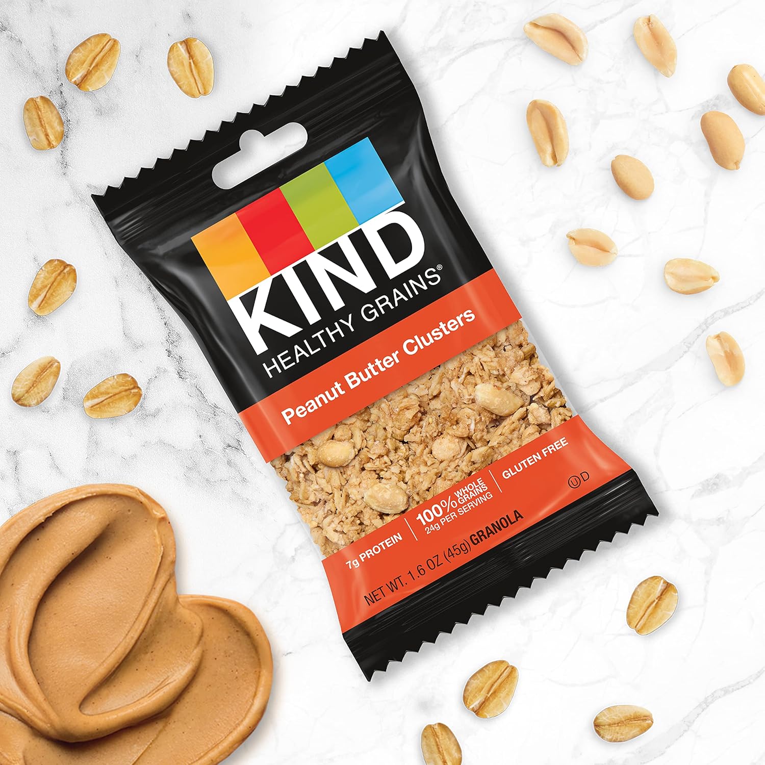 Kind Healthy Grains Grab & Go Granola Is Our Same Classic Granola Now In A Convenient Grab And Go Pouch. It'S A Perfect Snack For Those Who Are Busy And On-The-Go. Made With A Delicious Blend Of 5 Super Grains, Including Oats, Millet, Buckwheat, Amaranth, And Quinoa. This Granola Is A Good Source Of Fiber* And Made With 100% Whole Grains Providing A Nutritious Way To Start Your Day Right. Peanut Butter Clusters Is Gluten Free And Non-Gmo Project Verified. A Crunchy Texture Combined With Pieces Of Chopped Peanuts, Creamy Peanut Butter, And Oats, Delivers A Savory And Delicious Taste. The Easy, On-The-Go Pouch Design Makes It Perfect As Part Of A Quick Breakfast Or Mid-Day Snack. Kind Healthy Grains Grab & Go Granola Is Also Kosher, Low Sodium, And Gluten Free. Grab & Go Granola Has A Wholesome First Ingredient And Amazing Flavor. This Convenient Kind Healthy Grains Grab & Go Granola Snack Is Perfect For Everyone'S Busy Lifestyle. So Why Wait Grab A Pouch Today And Enjoy As Part Of A Delicious Breakfast Or As A Snack On-The-Go