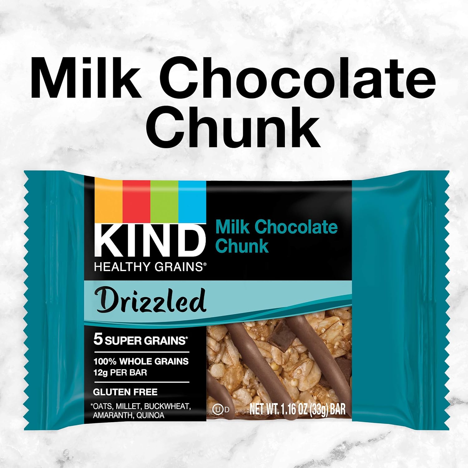 Kind Healthy Grains Bars Drizzled, Milk Chocolate Chunk, Gluten Free, 1.2 Oz, (8 Pack), 40 Count