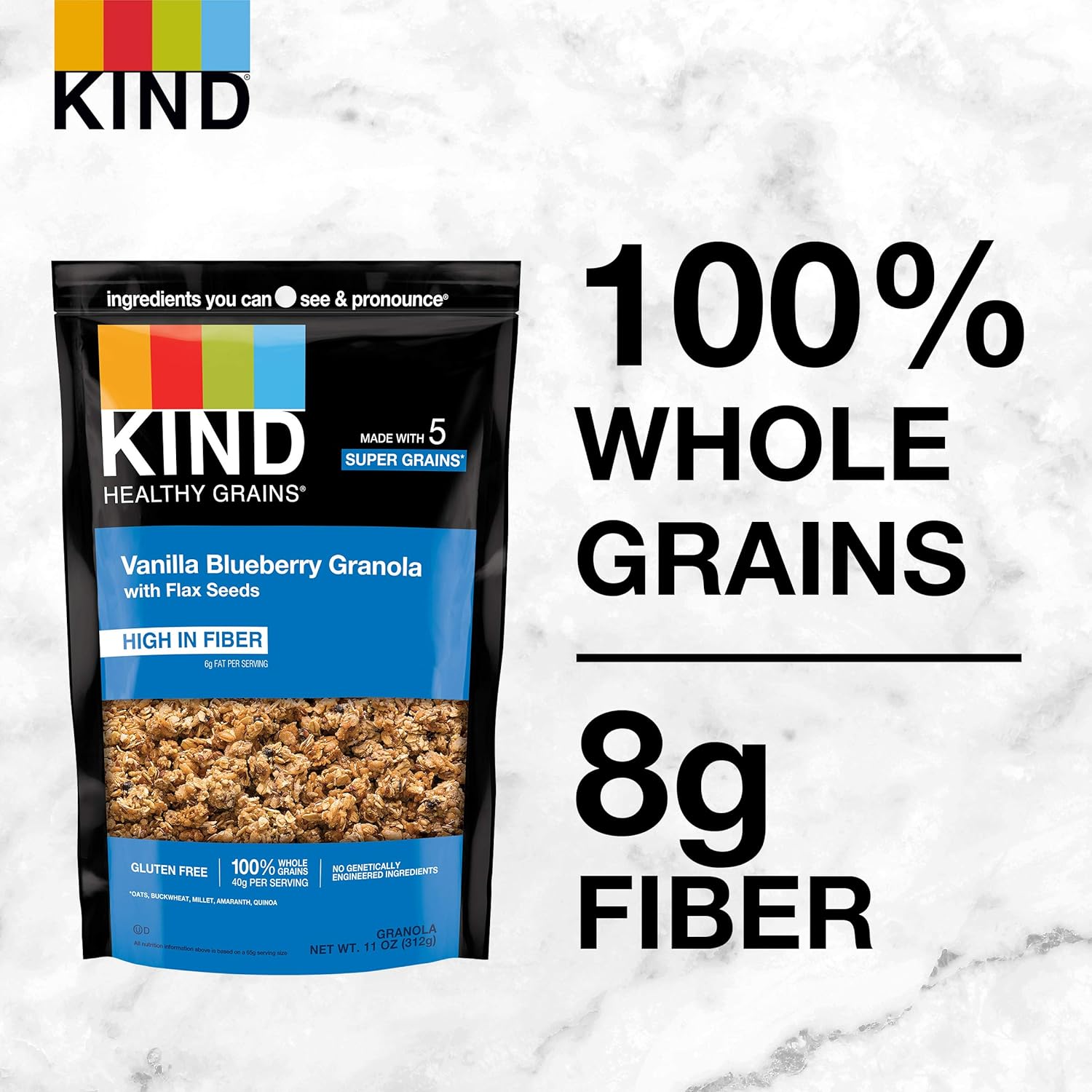 Kind Healthy Grains Granola, Healthy Snack, Vanilla Blueberry Granola With Flax Seeds, Snack Mix, 11 Oz (6 Bags)