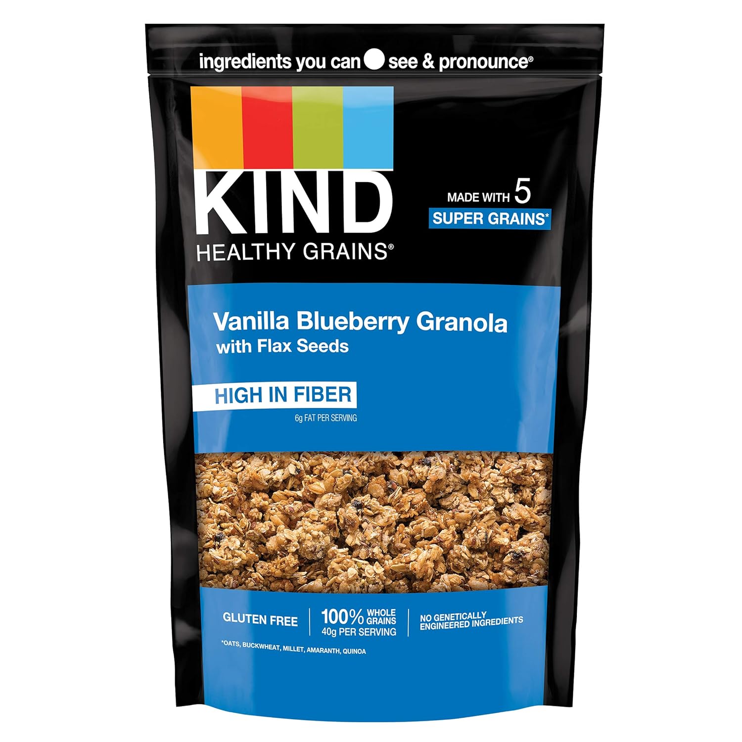 Kind Healthy Grains Vanilla Blueberry Granola With Flax Seeds Are An All-In-One, Convenient, Hand-To-Mouth Healthy Snack Mix. These Wholesome Clusters Are Made With 5 Super Grains - Oats, Millet, Buckwheat, Amaranth, Quinoa – And Include Vanilla And Flax Seeds For A Healthy, Gluten Free Snack Mix. Sprinkle This Convenient Snack Over Yogurt, Cereal Or Smoothies For A Whole Grain Addition To Your Breakfast, Or Enjoy This Gluten Free Granola Anytime Throughout The Day. These Clusters Are Low Sodium Snacks As Well As A Good Source Of Fiber*. These Gluten Free Snacks Are Made Without Genetically Engineered Ingredients. *Contains 6 Grams Of Fat Per Serving