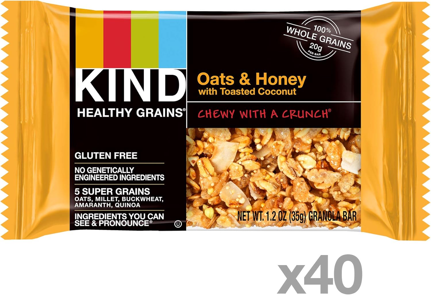 Kind Healthy Grains Oats & Honey With Toasted Coconut Bars, Gluten Free Bars, 1.2 Oz Bars (40 Count)