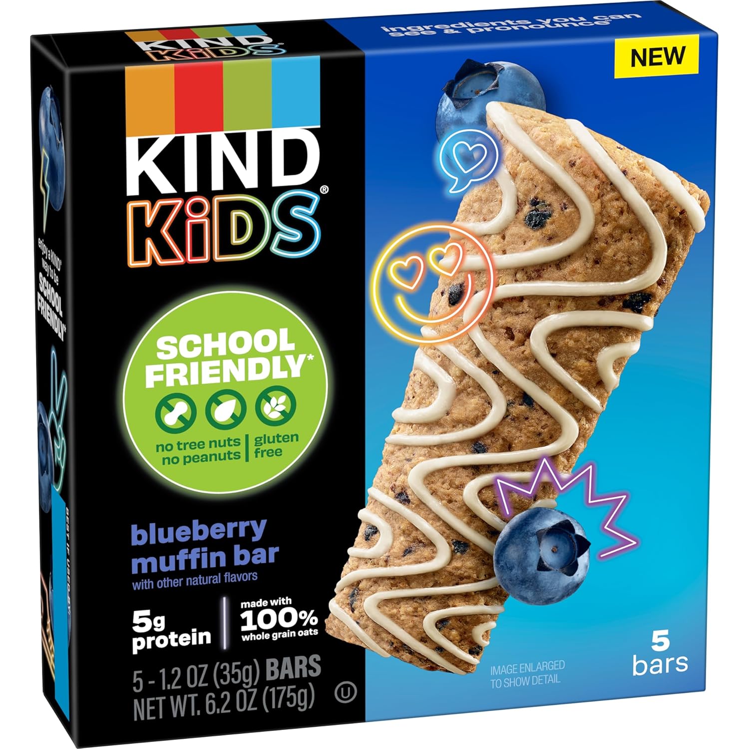 Enjoy A Kind Way To Be School Friendly* With Soft Baked And Delicious Kind Kids Blueberry Muffin Bar With Other Natural Flavors. These Kids Snacks Wrap Goodness, Yum, And Fun All In One. Our School Friendly Snack Bars Leave Out Tree Nuts And Peanuts, And Are Gluten Free. Kids Love The Taste, And Parents Can Feel Good About How Each Snack Bar Contains 5G Protein And Ingredients You Can See And Pronounce Like Nutritious 100% Whole Grain Oats And Dried Blueberries. These Bars Are Made With No Artificial Flavors Or Colors And 0G Trans Fat, Plus They'Re Low In Sodium. Just As You'D Expect From Kind, Our Kids Bars Are Non-Gmo Project Verified. Stock Your Pantry To Make Kind Kids Bars A Wholesome Lunch Box Snack. Add Them To A Snack Bag For Field Trips Or After School Sports. Take Some Along For Car Rides. Pack These Gluten Free Snacks For Play Dates. Reach For Kind Kids Blueberry Muffin Bar With Other Natural Flavors Any Time You Want A Great-Tasting And School-Ready Snack That Makes The Grade For Being Tree Nut Free, Peanut Free, And Gluten Free. *Please Check With Your Local School District To Confirm That This Product Meets Its Requirements
