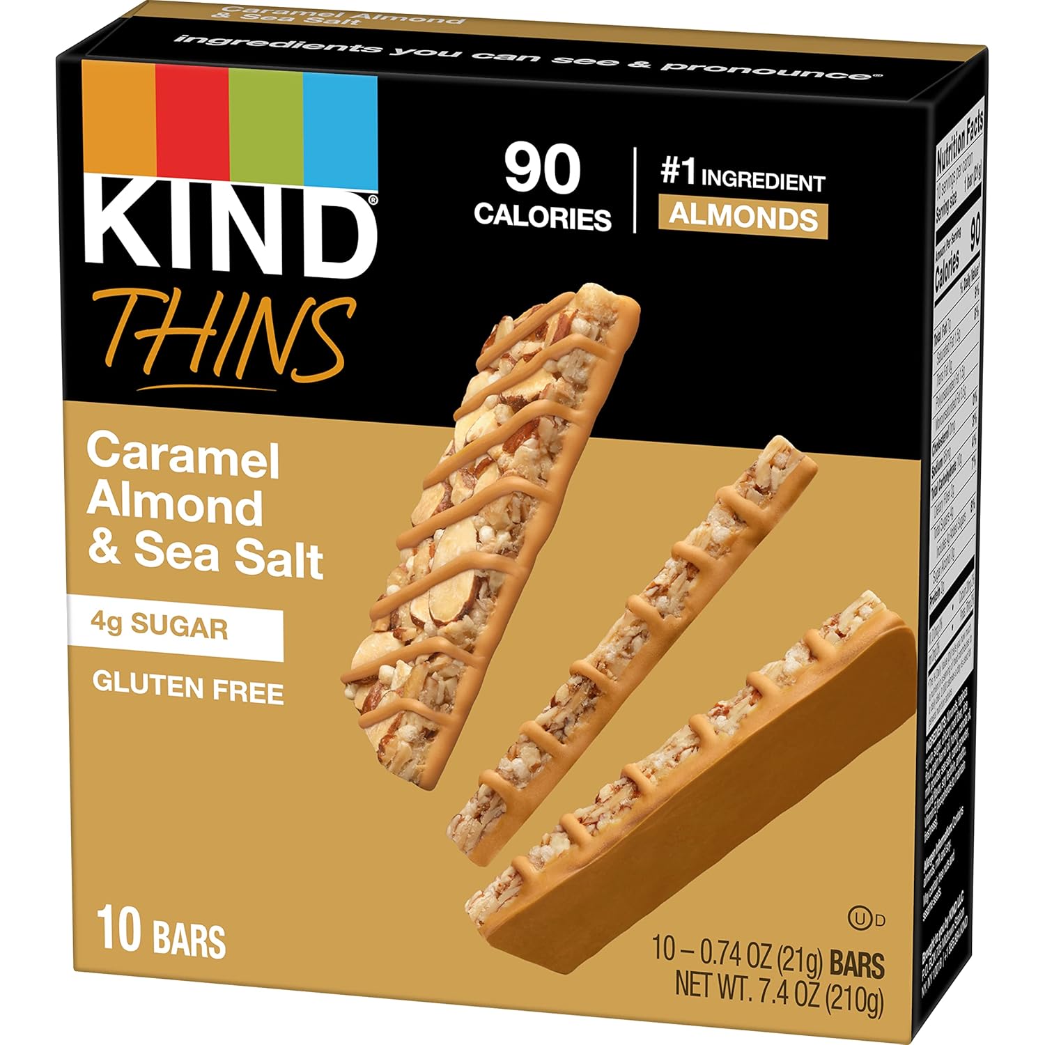 Kind Thins Caramel Almond & Sea Salt Bars, 0.74 Ounce, Gluten Free, 4G Sugar, 10 Count (Pack Of 6)