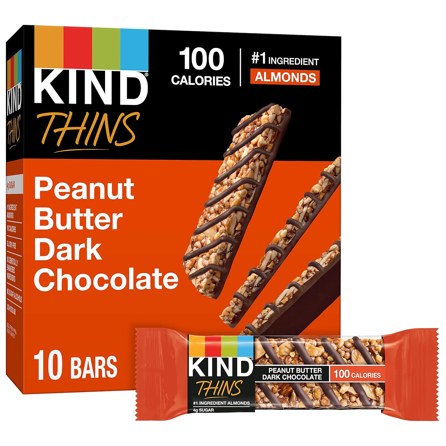 Kind Thins Peanut Butter Dark Chocolate Bars, Gluten Free, 100 Calories, 0.74 Oz Bars, 10 Count