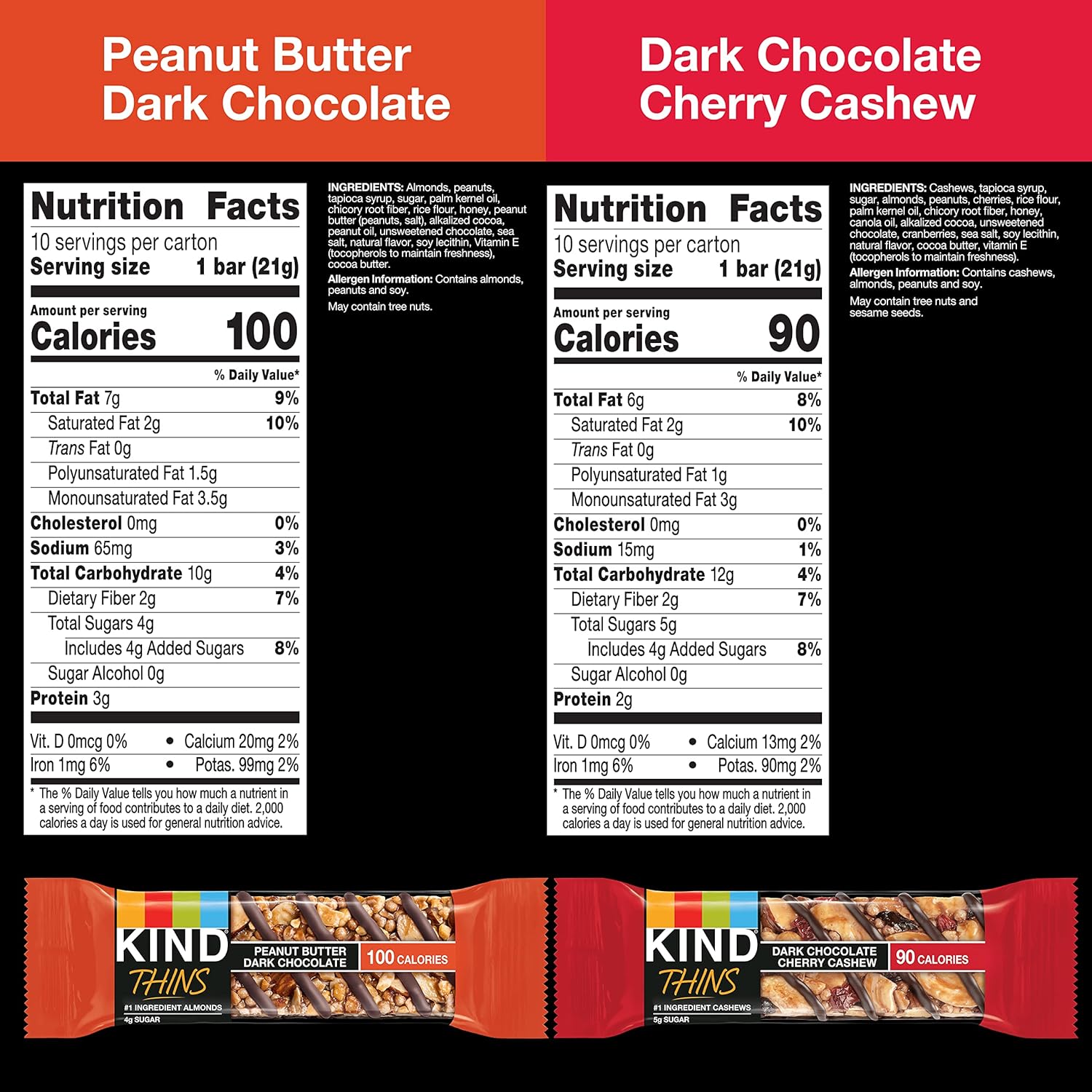 Kind Thins Variety Pack, Peanut Butter Dark Chocolate, Dark Chocolate Cherry Cashew, Healthy Snacks, Low Calorie, 20 Count