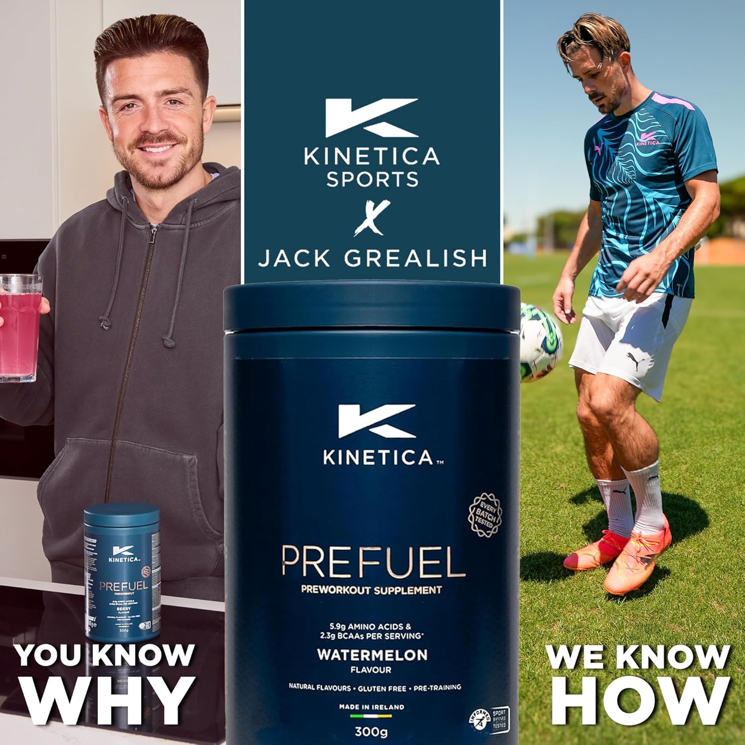 Kinetica Sports Prefuel Pre Workout-Watermelon Flavour |5.9G Amino Acids Blend, 2.3G Bcaa'S & 95Mg Caffeine/Serve, 30 Servings/300G|With Essential Vitamins Minerals|Supports Performance & Energy Boost