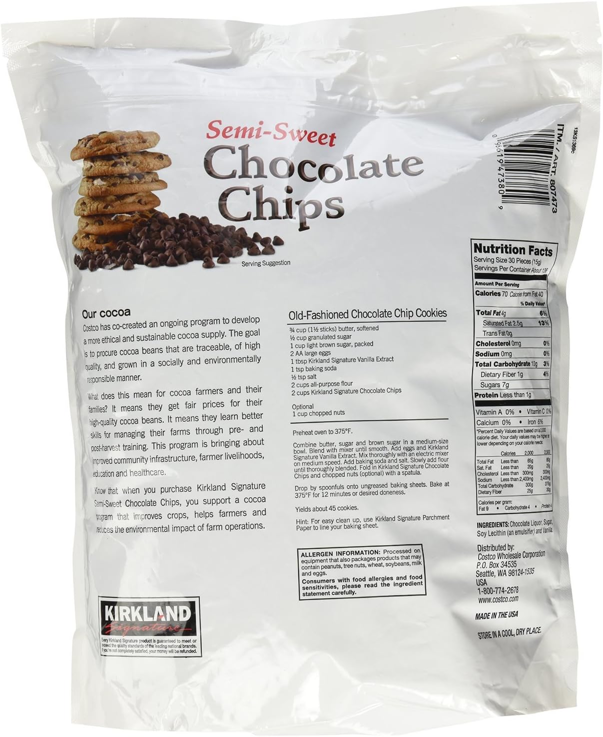 About The Product : Kirkland semi sweet chocolate chips 1 x 2.04kg