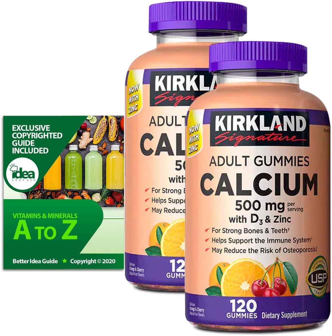 Kirkland Signature Calcium Gummies 500 Mg With D3 & Zinc, Bone Health, 120 Gummies (1 Pack) Bundle With Exclusive Vitamins & Minerals - A To Z - Better Idea Guide