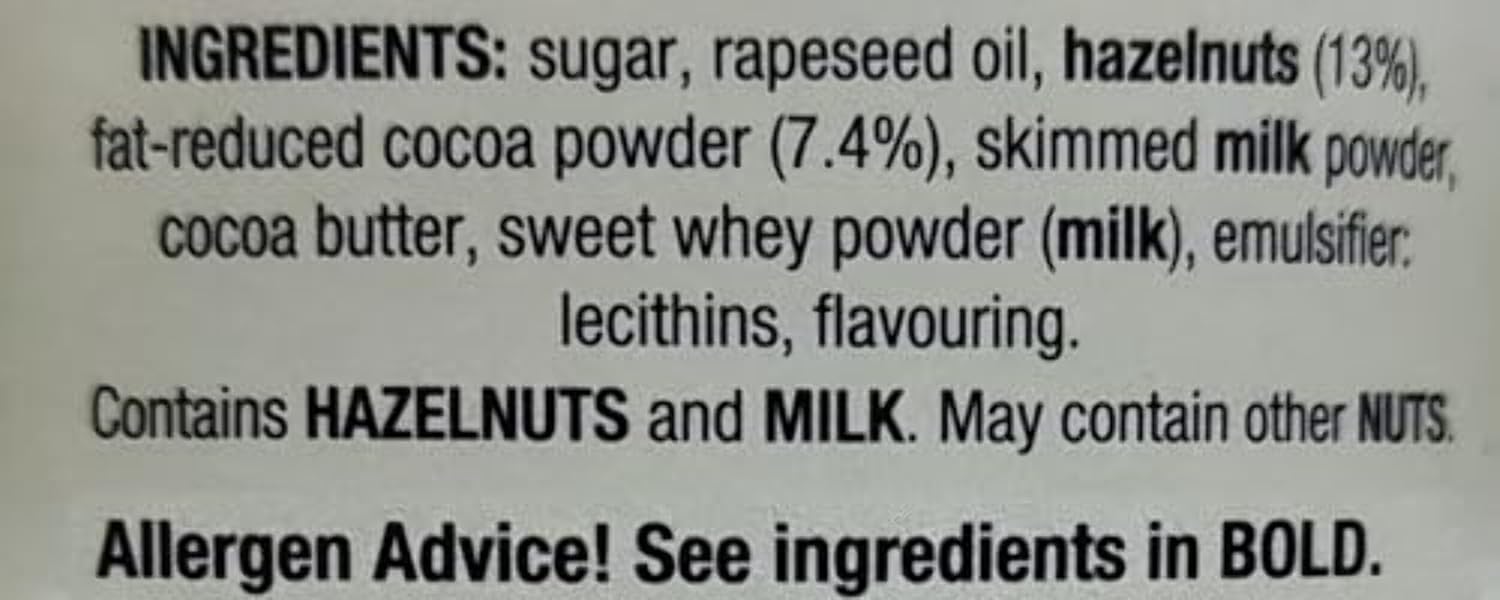 About The Product : Kirkland Signature Hazelnut Spread has an alluring, silky smooth blend of chocolate, skimmed milk, hazelnuts and sugar