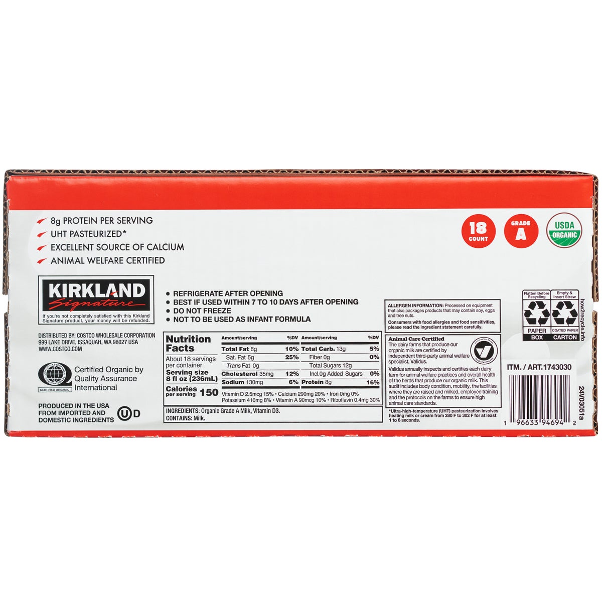 Kirkland Signature Organic Whole Milk, 8 Fl Oz, 18-Count