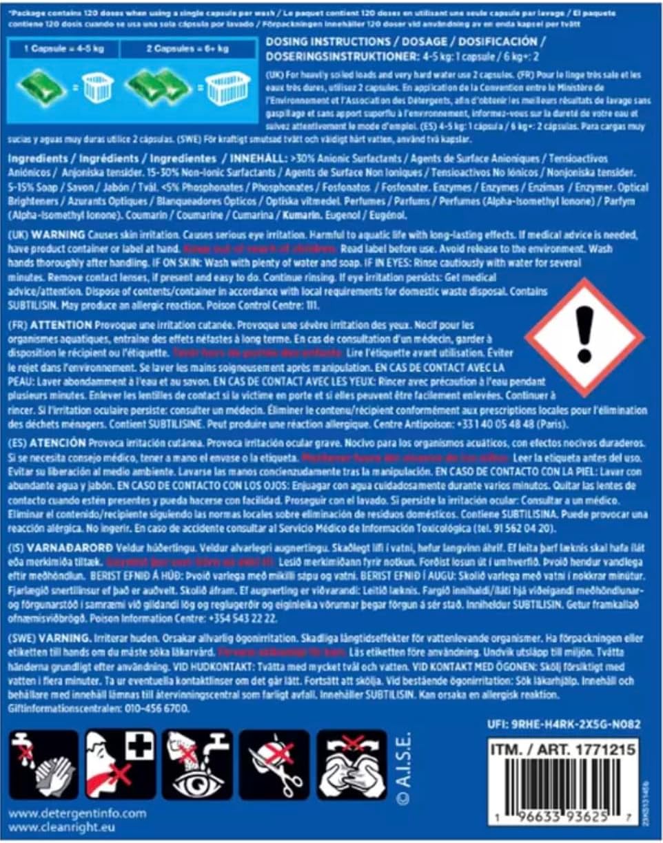About this item Odour Eliminating Fights Tough Stains Whiter Whites 2 X 60 Packs Biological Brighter Colours › See more product details,Odour Eliminating,Fights Tough Stains,Whiter Whites,2 X 60 Packs,Biological,Brighter Colours