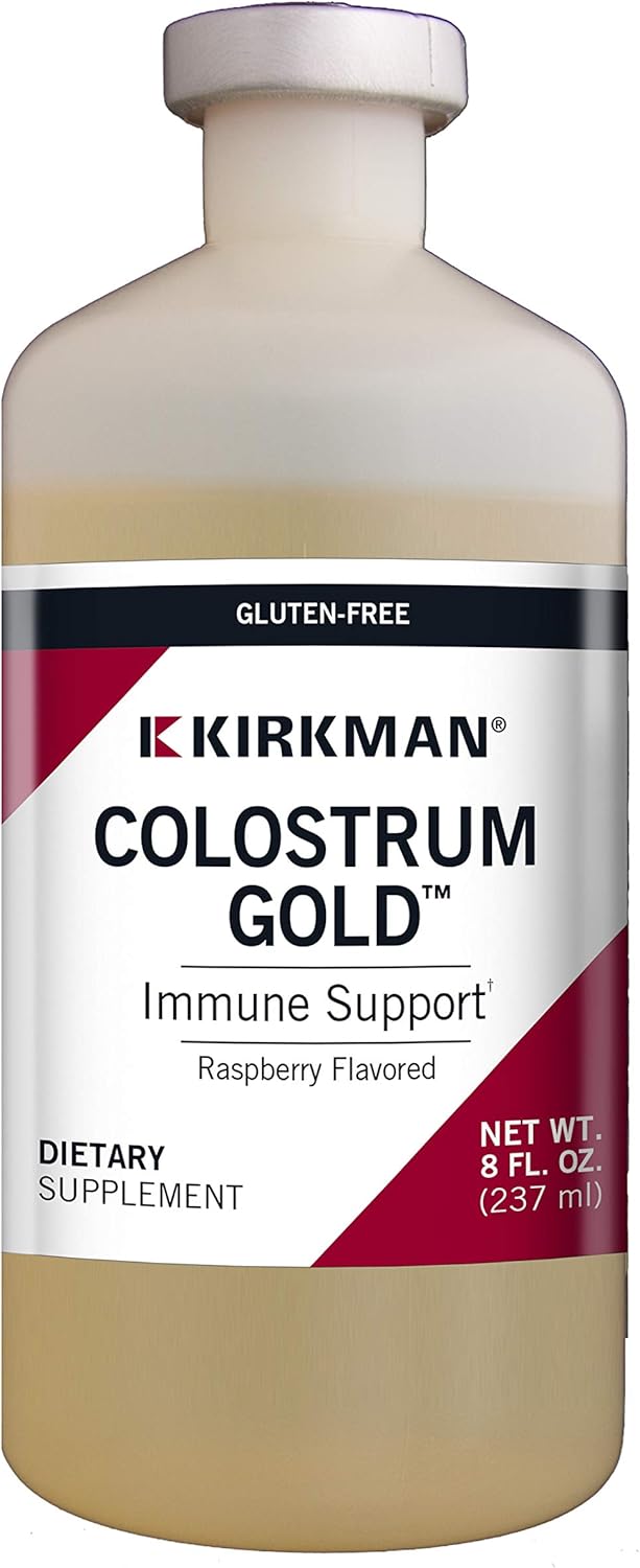 Kirkman Colostrum Gold Immune Support Supplement, Raspberry Flavored Liquid Bovine Colostrum, Supports Muscle, Skin & Cartilage Tissue Growth, Antibiotic & Added Hormone Free Kirkman Colostrum Gold Comes With Natural Benefits To Help Boost Your Immune System And Support Healthy Growth.* Derived From Cows Raised Without Antibiotics Or Added Hormones, Our Colostrum Is Carefully Collected Within 24 Hours Of Birth. It Undergoes Multiple Filtration Processes To Ensure That The Casein Content Of Kirkman'S Colostrum Is At A Very Low Level Of 1000 Parts Per Million Or Less. Known As ""Nature'S First Food"", Colostrum Provides Essential Immune System Protection And Growth Factors Crucial For Muscle, Skin, Cartilage, Nerves And Bone Tissues.* Flavored With Raspberry And Sweetened With Sucralose, It'S A Delicious Addition To Your Routine. Formulated Without Common Allergens Like Eggs, Fish, Nuts, Wheat, Or Soy, Our Product Suits Various Dietary Needs. Take Half A Teaspoon Twice Daily Or As Directed By A Physician. Store Refrigerated After Opening And Keep Out Of Reach Of Children. *These Statements Have Not Been Evaluated By The Food And Drug Administration. This Product Does Not Intend To Diagnose, Treat, Cure Or Prevent Any Disease