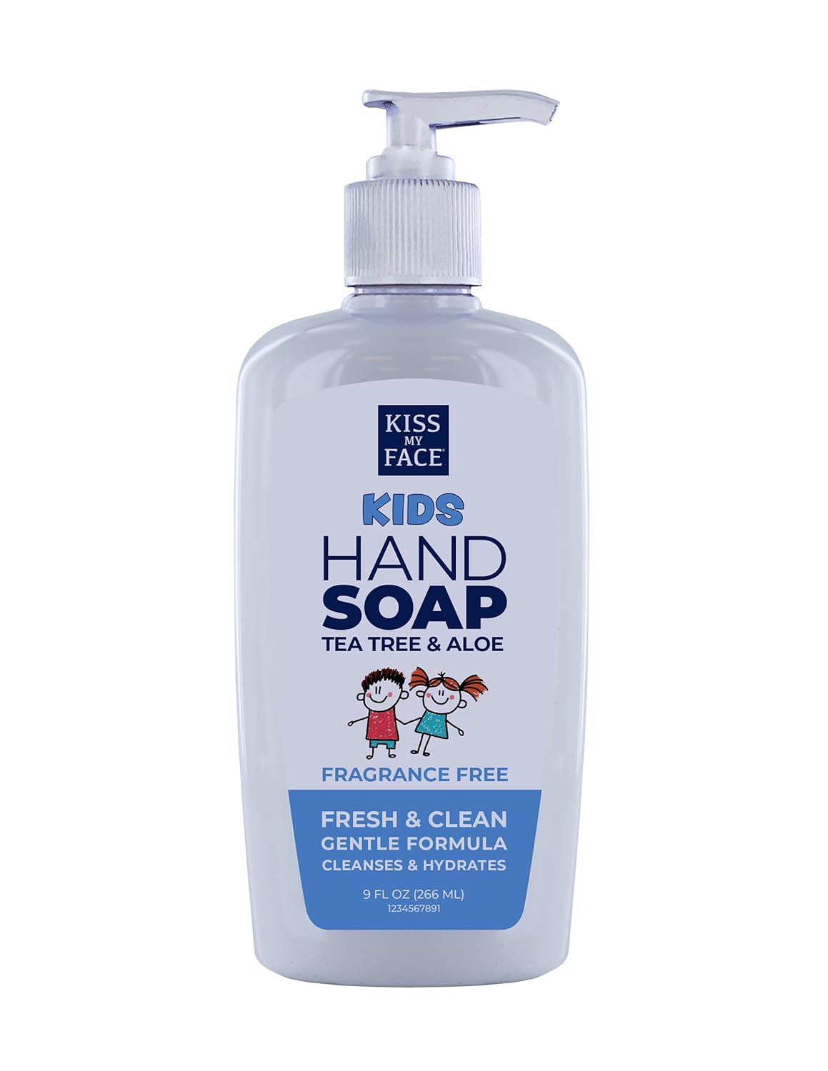 About this item CLEANSE AND HYDRATE: Infused with Tea Tree Oil, Aloe Vera and Cucumber, this hand soap gently and effectively help fight pesky germs while keeping skin hydrated and soothed; Free of fragrance for little ones with sensitive skin. VEGAN AND CRUELTY-FREE: Kiss My Face Kids Hand Soap is Vegan, Cruelty-Free, with no Parabens, Phthalates, Sodium Lauryl/Laureth Sulfates, Mineral Oil, Artificial Colors, or Formaldehyde Donors. UNIQUE BLEND: Our kid-approved formula is made with clean, simple ingredients like tea tree oil to help protect against germs; with added aloe, and cucumber to keep hands from drying out. EASY-TO-USE: Maintain your cleanse, with our easy-to-use hand soap pump; Lather, pump and share the benefits of a fresh clean. KISS MY FACE: We pride ourselves on making high-quality, wholesome personal care products for the entire family; It’s our mission to find and combine wholesome ingredients to create the most effective and better body and personal care products anywhere. See more product details,CLEANSE AND HYDRATE: Infused with Tea Tree Oil, Aloe Vera and Cucumber, this hand soap gently and effectively help fight pesky germs while keeping skin hydrated and soothed; Free of fragrance for little ones with sensitive skin,VEGAN AND CRUELTY-FREE: Kiss My Face Kids Hand Soap is Vegan, Cruelty-Free, with no Parabens, Phthalates, Sodium Lauryl/Laureth Sulfates, Mineral Oil, Artificial Colors, or Formaldehyde Donors,UNIQUE BLEND: Our kid-approved formula is made with clean, simple ingredients like tea tree oil to help protect against germs; with added aloe, and cucumber to keep hands from drying out,EASY-TO-USE: Maintain your cleanse, with our easy-to-use hand soap pump; Lather, pump and share the benefits of a fresh clean,KISS MY FACE: We pride ourselves on making high-quality, wholesome personal care products for the entire family; It’s our mission to find and combine wholesome ingredients to create the most effective and better body and personal care products anywhere