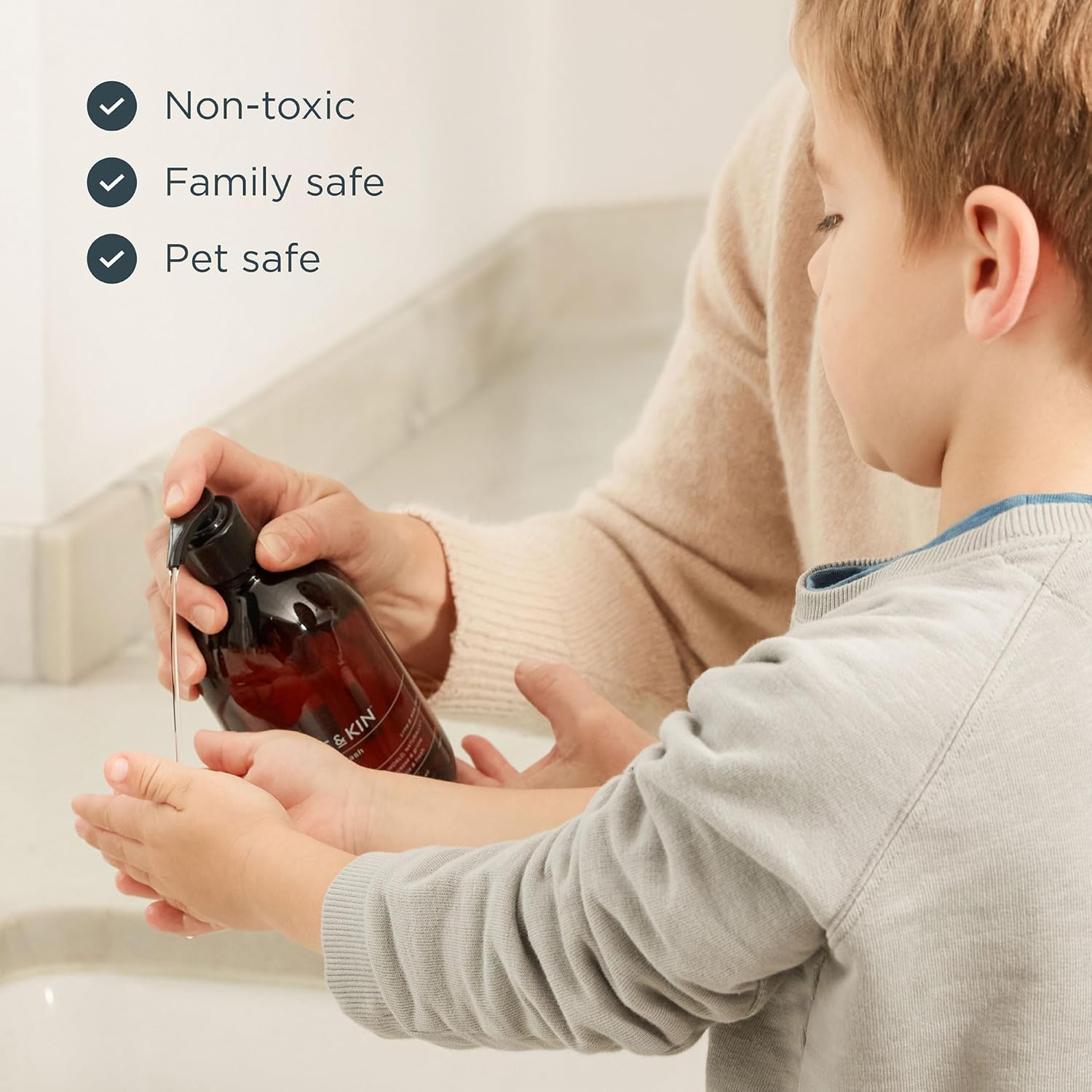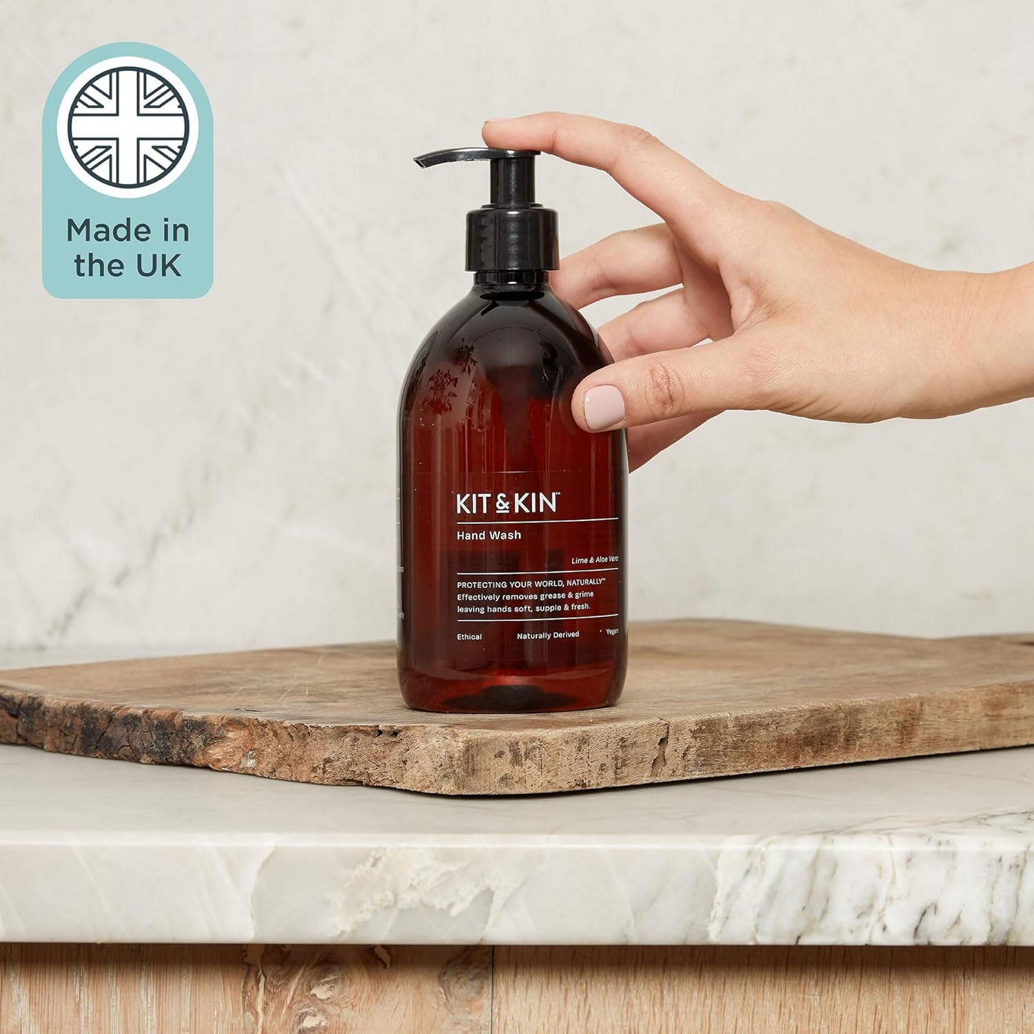 Kit & Kin Eco Hand Wash 3 Bottles + 3 Refills | Lime & Aloe Vera Hand Soap | Plant-Based & Vegan | 100% Naturally Derived | No Harsh Chemicals | Kills 99.9% Of Harmful Bacteria | Made In Uk