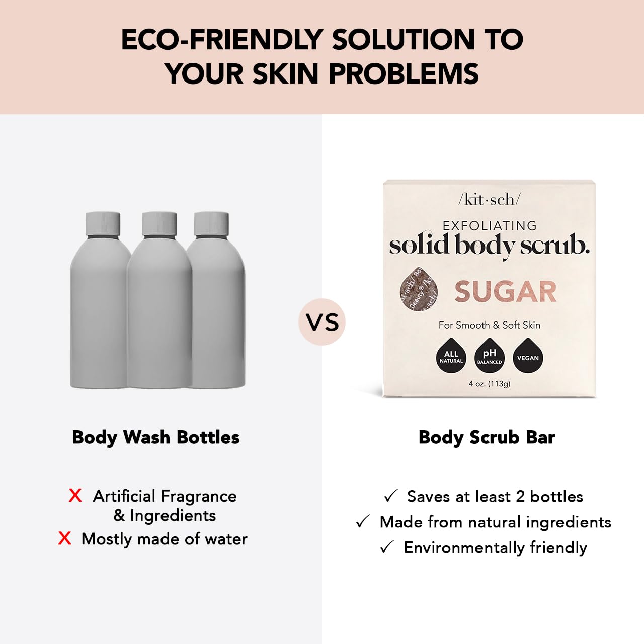 Kitsch Exfoliating Sugar Scrub For Body – All Natural Body Scrub Bar Soap For Smooth, Hydrated & Glowing Skin - Vegan Soap Bar Exfoliator For Men And Women - Made In The Usa - 4 Oz