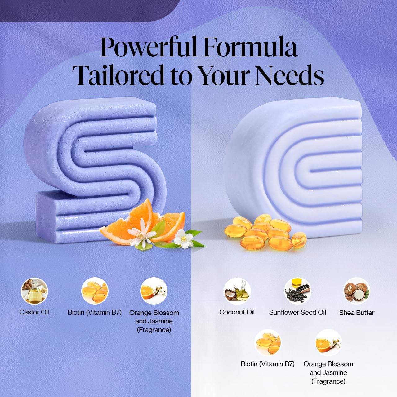 About this item POWERFUL PURPLE TONING DUO: Neutralizes unwanted brassiness, yellow undertones, and dullness in blonde, gray, white, and color-treated hair β revealing brighter, healthier, and vibrant tones after just one use ENRICHED WITH BIOTIN FOR STRONGER HAIR: Formulated with biotin to boost shine, reduce dullness, and strengthen your hair, promoting smoother, more resilient strands that look and feel revitalized. ECO-FRIENDLY & PLASTIC-SAVING: This shampoo and conditioner combo reduces single-use plastic by replacing two bottles with one set of high-quality solid bars β a sustainable choice for beauty lovers. PH BALANCED & SAFE FOR COLOR-TREATED HAIR: Gentle, sulfate-free, silicone-free, paraben-free, phthalate-free, and free from artificial fragrances β designed specifically to protect your color and maintain hair health. MADE IN THE USA WITH PREMIUM INGREDIENTS: Crafted with care from quality ingredients to deliver effective toning and conditioning results while supporting ethical manufacturing practices. βΊ See more product details,POWERFUL PURPLE TONING DUO: Neutralizes unwanted brassiness, yellow undertones, and dullness in blonde, gray, white, and color-treated hair β revealing brighter, healthier, and vibrant tones after just one use,ENRICHED WITH BIOTIN FOR STRONGER HAIR: Formulated with biotin to boost shine, reduce dullness, and strengthen your hair, promoting smoother, more resilient strands that look and feel revitalized,ECO-FRIENDLY & PLASTIC-SAVING: This shampoo and conditioner combo reduces single-use plastic by replacing two bottles with one set of high-quality solid bars β a sustainable choice for beauty lovers,PH BALANCED & SAFE FOR COLOR-TREATED HAIR: Gentle, sulfate-free, silicone-free, paraben-free, phthalate-free, and free from artificial fragrances β designed specifically to protect your color and maintain hair health,MADE IN THE USA WITH PREMIUM INGREDIENTS: Crafted with care from quality ingredients to deliver effective toning and conditioning results while supporting ethical manufacturing practices