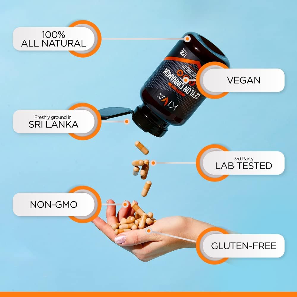 Kiva Premium Ceylon Cinnamon Powder Capsules (120 Veggie Capsules), Pure Ceylon Cinnamon From Sri Lanka, Vegan, Non-Gmo, Gluten-Free
