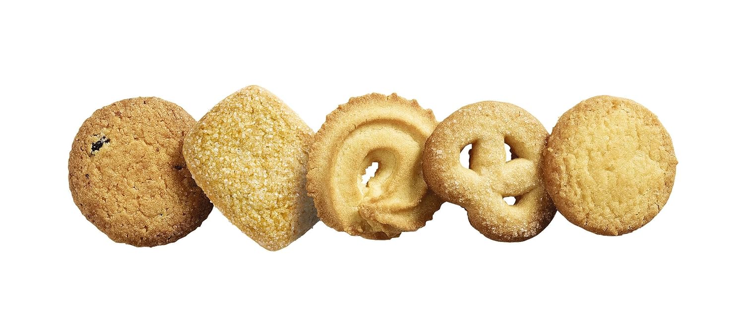 Variety Pack: This 1lb pack includes a variety of butter cookie flavors and shapes