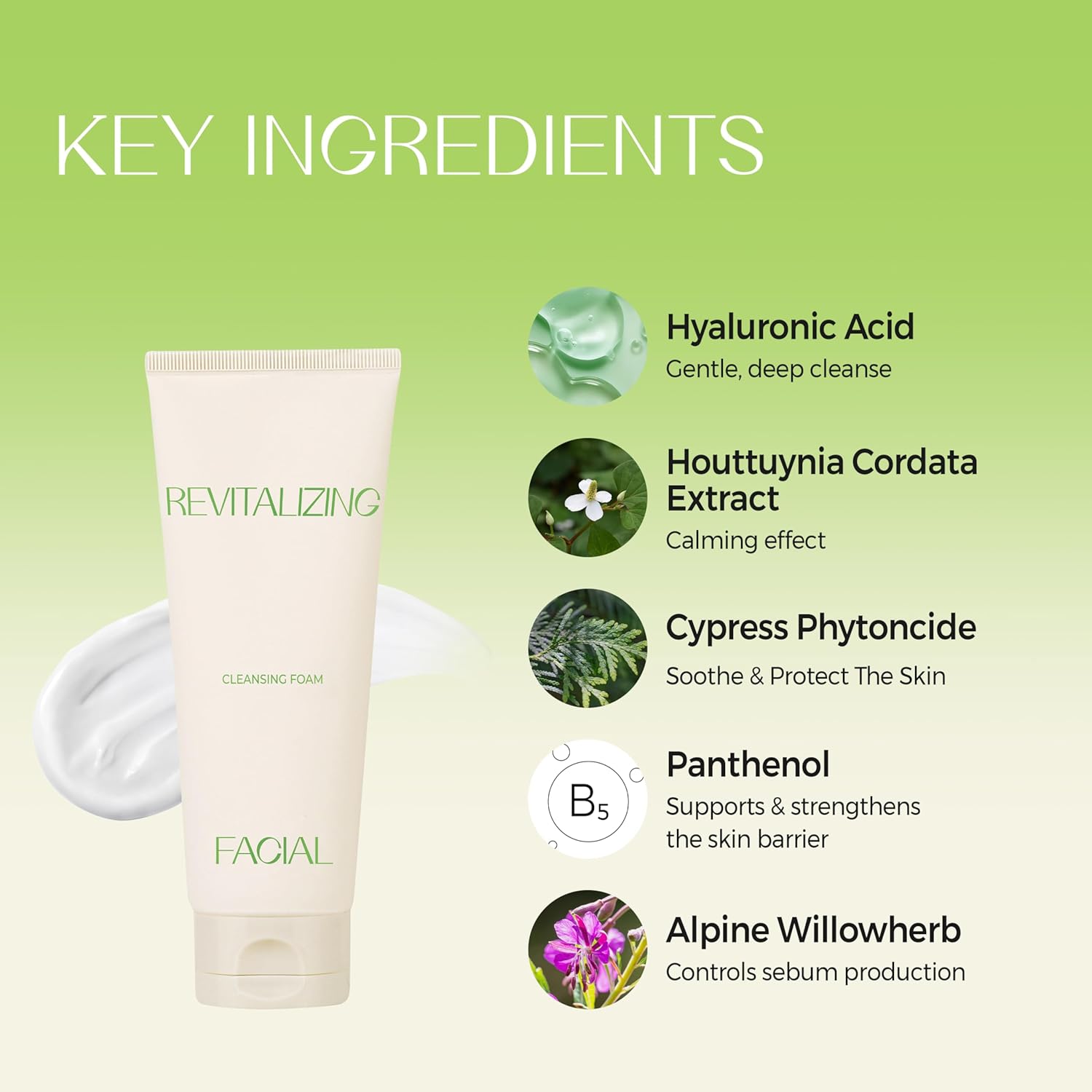 With Hyaluronic Acid for Hydration Cleansing : Enhanced with Hyaluronic Acid, our facial cleanser does more than cleansing the face โ it hydrates as well. It retains your skin's natural moisture after cleansing, ensuring a balanced and non-drying cleansing experience. In addition, the herb tea complex included supports soothing and moisturizing the skin along with hyaluronic acid. This facial cleanser Ideal for maintaining healthy skin moisture levels all day long