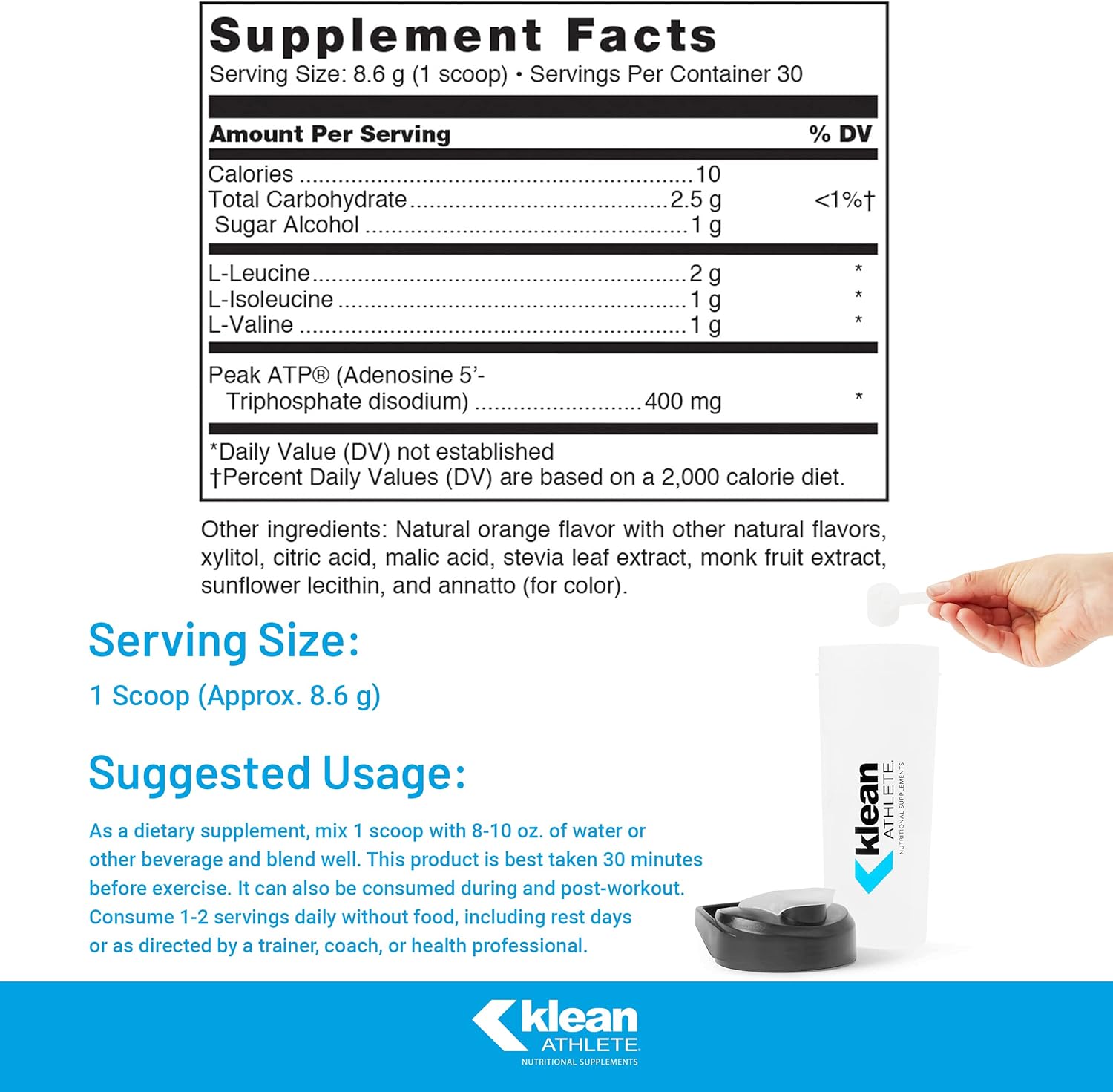 Klean Athlete Klean Bcaa + Peak Atp | Amino Acid Supplement For Muscle Building, Workout Recovery, And Lean Muscle | 9.1 Ounces | Natural Orange Flavor