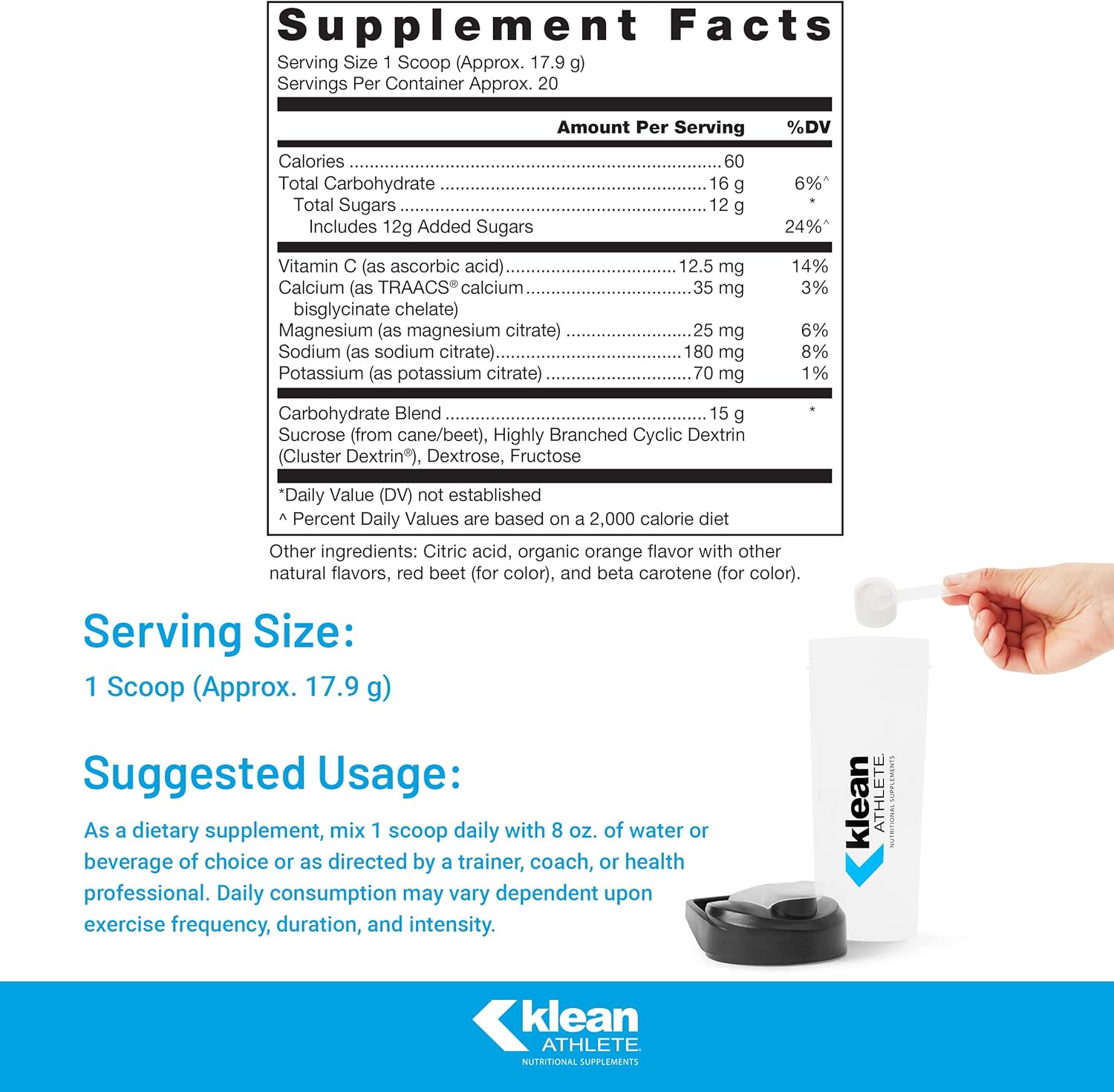 About this item Complete Electrolyte Formula: Klean Hydration consists of 6% carbohydrates, comprised of simple carbohydrates and a complex carbohydrate (branched dextrin) with additional minerals for the replacement of fluid and electrolytes during physical activity.* Carbohydrates support the uptake of fluid from the intestine into the plasma while serving as a readily available energy source during aerobic or anaerobic efforts.* Sodium & Potassium: Sodium is an electrolyte that is vital to fluid balance. Sodium also encourages repeated consumption of a beverage by mitigating the attenuation of thirst that athletes often experience in the later stages of an endurance event.* Potassium is another electrolyte that is located inside of cells and cooperates with sodium in many ways. Both sodium and potassium are necessary for the normal functioning of cells, nerves, and muscles.* Magnesium & Calcium: Magnesium is a mineral that is largely found in the bones but plays roles in muscle function.* Calcium is a mineral that can be lost in small amounts through sweat and urine. TRACCS calcium in Klean Hydration is chelated for enhanced absorption.* Klean is Clean. Klean Athlete products are GMO-free and formulated without wheat, gluten, or artificial coloring, flavoring or sweeteners. Every product is third party certified by NSF International's NSF Certified for Sport program, to help athletes, coaches and trainers make more informed decisions when choosing sports supplements. Genestra Brands is a leading-edge line of professional-grade nutraceuticals that has helped people restore, rebuild and maintain their health for 30 years.* › See more product details,Complete Electrolyte Formula: Klean Hydration consists of 6% carbohydrates, comprised of simple carbohydrates and a complex carbohydrate (branched dextrin) with additional minerals for the replacement of fluid and electrolytes during physical activity.* Carbohydrates support the uptake of fluid from the intestine into the plasma while serving as a readily available energy source during aerobic or anaerobic efforts,Sodium & Potassium: Sodium is an electrolyte that is vital to fluid balance. Sodium also encourages repeated consumption of a beverage by mitigating the attenuation of thirst that athletes often experience in the later stages of an endurance event.* Potassium is another electrolyte that is located inside of cells and cooperates with sodium in many ways. Both sodium and potassium are necessary for the normal functioning of cells, nerves, and muscles,Magnesium & Calcium: Magnesium is a mineral that is largely found in the bones but plays roles in muscle function.* Calcium is a mineral that can be lost in small amounts through sweat and urine. TRACCS calcium in Klean Hydration is chelated for enhanced absorption,Klean is Clean. Klean Athlete products are GMO-free and formulated without wheat, gluten, or artificial coloring, flavoring or sweeteners. Every product is third party certified by NSF International's NSF Certified for Sport program, to help athletes, coaches and trainers make more informed decisions when choosing sports supplements,Genestra Brands is a leading-edge line of professional-grade nutraceuticals that has helped people restore, rebuild and maintain their health for 30 years