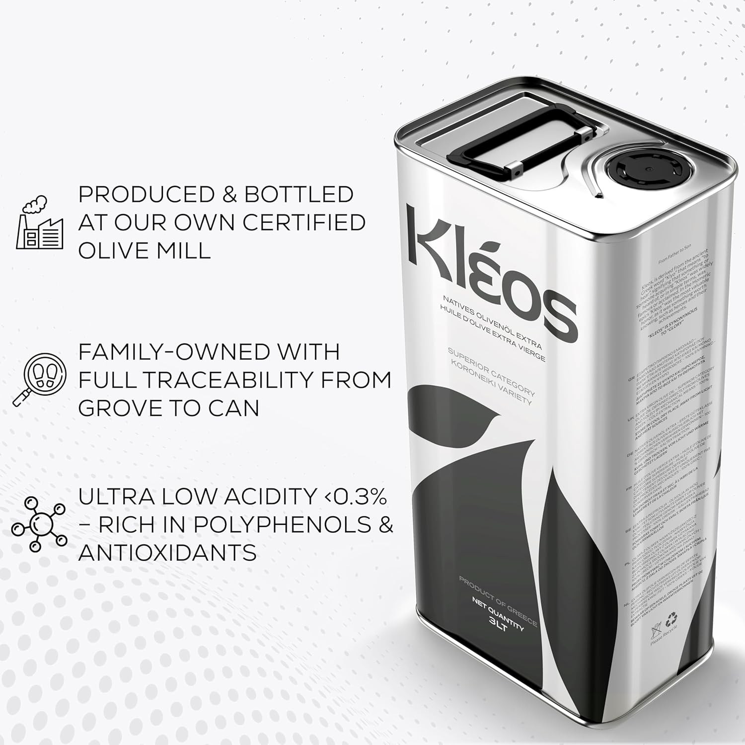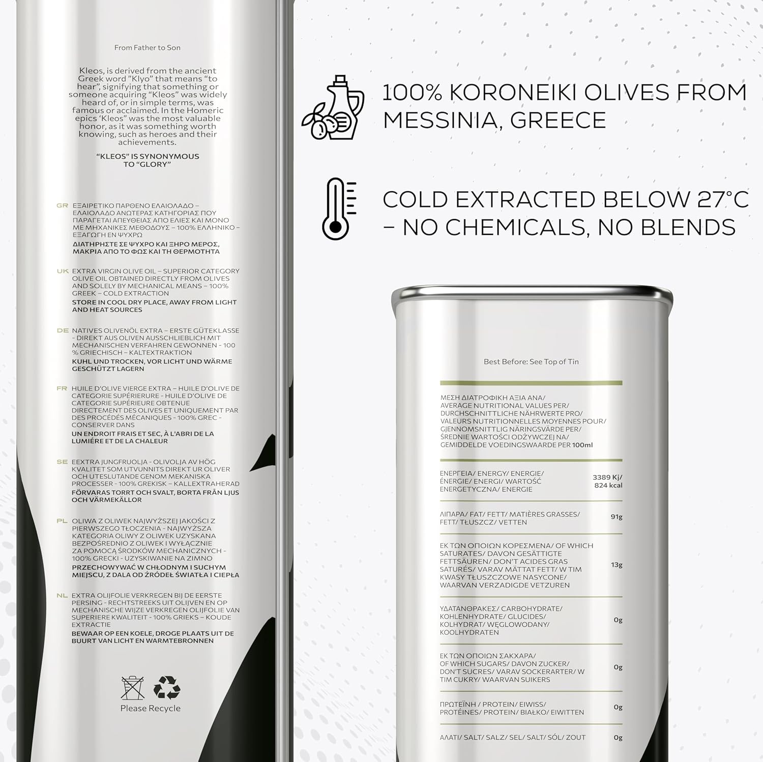 Kleos Extra Virgin Olive Oil 1 Liter - Harvest 2024-25 - Cold-Pressed Greek Olive Oil From Koroneiki Olives - Premium Quality