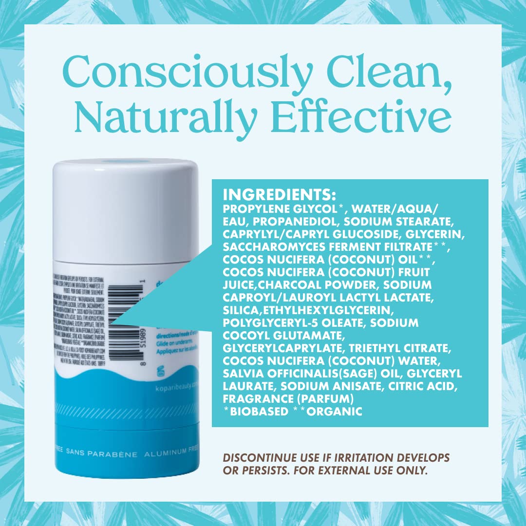 Kopari Aluminum Free Coconut Deodorant, Non Toxic & Clean Plant-Based, No Aluminum, Parabens Or Baking Soda, Long Lasting Protection, Charcoal 2 Oz
