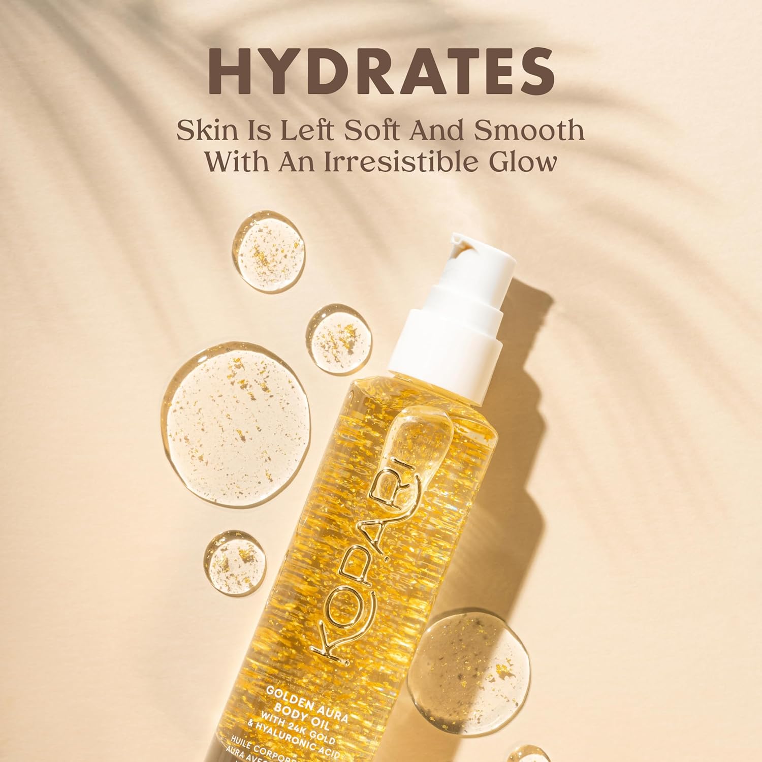 Kopari Golden Aura Body Oil With 24K Gold & Hyaluronic Acid - Hydrating Formula For Glowing Skin 3.3 Oz