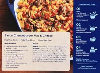 KRAFT MACARONI & CHEESE: One 14 oz box of Kraft Deluxe Original Macaroni & Cheese Dinner10RICH & CREAMY: Help yourself to a warm, comforting bowl of our rich and creamy mac and cheese10ICONIC CHEESINESS: Deliciously real, our sauce is made with real cheese for the ultimate feel-good food10ALL SMILES: Hearty, ridged macaroni noodles are covered in creamy cheese to wrap you in comfort and put a smile on your face10REAL FLAVOR: Made with no artificial flavors or dyes, Kraft Deluxe Macaroni and Cheese lifts you up and makes you happy inside10Help yourself to a bowl of comfort with Kraft Deluxe Original Macaroni & Cheese Dinner. Rich and creamy, our dinner is made with ridge macaroni and real cheese sauce. Our dinner contains no artificial flavors or dyes for a deliciously real meal. Kraft Deluxe is a quick and easy meal, perfect for families. To prepare, simply boil noodles for 11-12 minutes, drain and add to the pan, then squeeze in our cheesy sauce and stir. Top it with crispy chicken or mix in broccoli for an even better bite. Don't be fooled by the new packaging; our deluxe mac and cheese still has the same contagiously positive and delicious taste. Each 14 oz box makes about 4 servings so everyone can enjoy our noodlefuls of delight. Eat something everyone will smile about with Kraft Deluxe Macaroni and Cheese