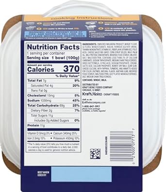 One 3.5 oz. Cup of Kraft Easy Mac big bowl original Mac and cheese10Macaroni and cheese is an easy dinner that's ready in 3.5 minutes10Macaroni and cheese Dinner includes macaroni pasta and original flavor cheese sauce mix10Contains no artificial flavors, no artificial preservatives and no artificial dyes10Easy Mac and cheese is microwaveable for convenience10Kraft Easy Mac big bowl original flavor macaroni and cheese is an easy dinner that's ready in just minutes. Kids and adults love the rich taste and creamy texture of macaroni noodles with cheesy goodness. These easy macaroni and cheese Cups include macaroni pasta and original flavor cheese sauce mix so you have everything you need to make a delicious quick dinner by just adding water. With no artificial flavors, No artificial preservatives and no artificial dyes, microwave macaroni and cheese always makes a great single serve lunch or dinner option. After getting your groceries, preparing this microwave dinner is a breeze Just combine the pasta with 2/3 cup of water, microwave for 3.5 to 4 minutes and stir the cheese powder sauce mix. Now you can have your Kraft Macaroni and cheese and eat it too