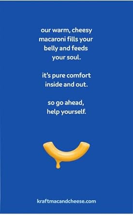 KRAFT MACARONI & CHEESE: One 14.5 oz box of Kraft Original Flavor Macaroni and Cheese Family Dinner10CONVENIENT DINNER: Kraft Original Flavor Macaroni and Cheese Family Dinner is a convenient boxed dinner10ICONIC CHEESINESS: Box includes macaroni noodles and original flavor cheese sauce mix10REAL FLAVOR: Contains no artificial flavors, no artificial preservatives and no artificial dyes10CONTAINS 6 SERVINGS: One box makes 6 servings10Help yourself to a bowl of comfort. Kraft Original Mac & Cheese Family Size Dinner is a convenient boxed dinner. Kids and adults love the delicious taste of macaroni with cheesy goodness. Our handy 14.5 ounce dinner includes macaroni pasta and original flavor cheese sauce mix, so you just need milk and margarine or butter to make a tasty side, snack or addition to a meal. With no artificial flavors, preservatives or dyes, boxed macaroni and cheese is always a great family dinner choice. Preparing macaroni and cheese is a breeze. Just boil the pasta for 7-8 minutes, drain the water and stir in the cheese mix, milk, and margarine or butter. Kraft Mac & Cheese inspires the positive power of comfort