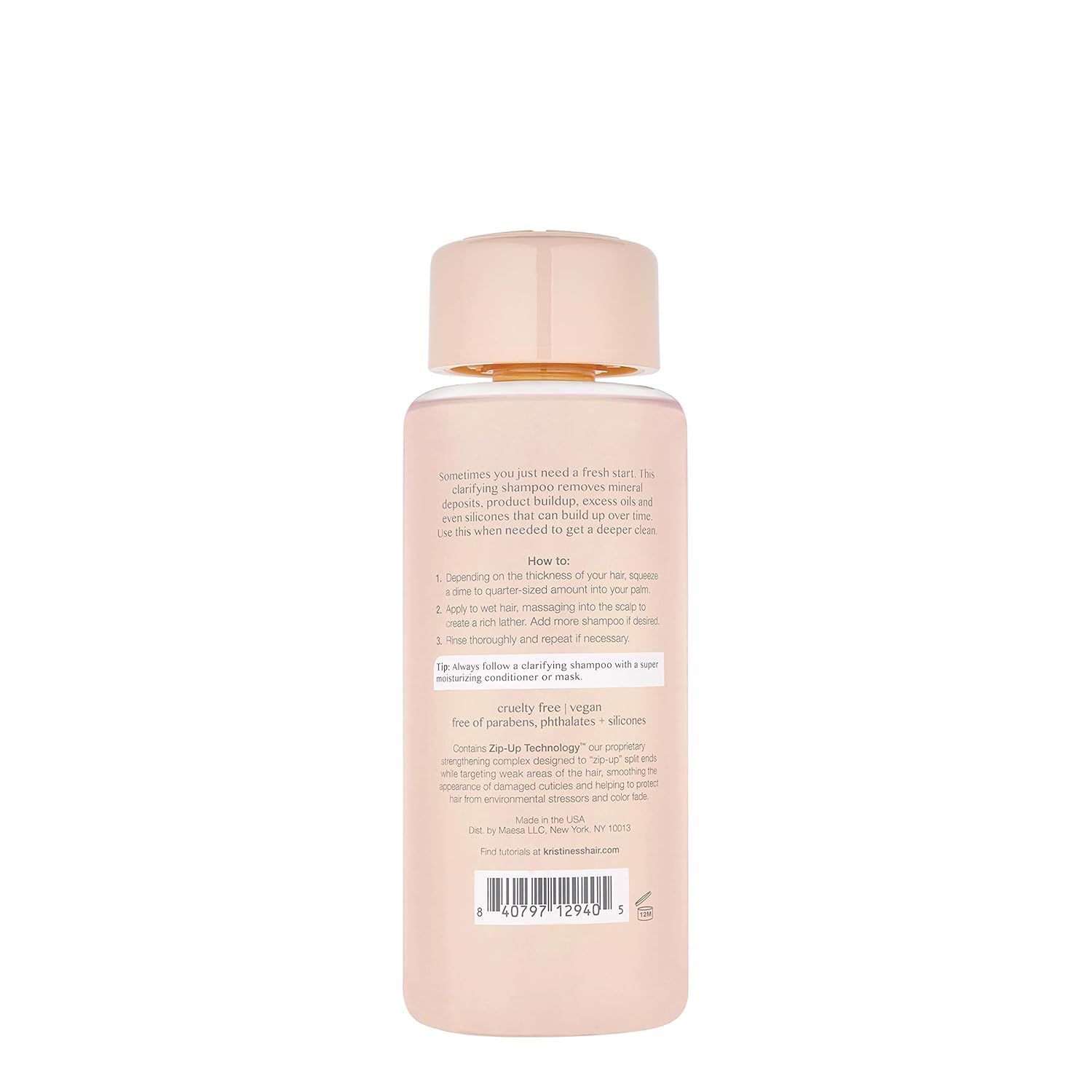 Contains Zip-Up Technology, our proprietary strengthening complex designed to "zip-up" split ends while targeting weak areas of the hair, smoothing the appearance of damaged cuticles and helping to protect hair from environmental stressors and color fade,“Sometimes you just need a fresh start. This clarifying shampoo removes mineral deposits, product buildup, excess oils, and even silicones that can build up over time. Use this when needed to get a deeper clean.” - Kristin Ess,Cleanse + Condition: A clean, well-conditioned canvas is essential. These universal products cleanse + deeply condition to leave hair feeling moisturized, full and looking shiny from root to tip,For all hair types, Buildup removing, Purifying + volumizing, Shine enhancing, Mineral detoxifying, Super sudsing,How To: Depending on the thickness of your hair, squeeze a dime to quarter-sized amount of shampoo into your palm. Apply to wet hair, massaging into the scalp to create a rich lather. Add more shampoo if desired. Rinse thoroughly and repeat if necessary,Cruelty free + vegan, free of parabens, phthalates + silicones