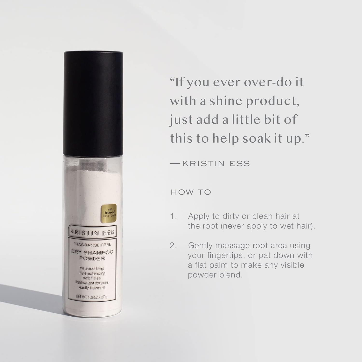 Kristin Ess Hair Fragrance Free Dry Shampoo Powder Spray for Oily Hair - Absorbs Oil, Style Extending Dry Shampoo for Men and Women, Easily Blended, Lightweight Formula, Non-Aerosol, Vegan, 1.3 oz