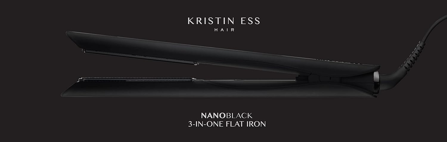 Kristin Ess Hair Nanoblack Travel Flat Iron Straightener + Style Assist Heat Protectant Spray Gift Set - Travel Case Accessory - 3/4 Inch Ceramic Mini Hair Straightener for Short Hair - Auto Shut Off