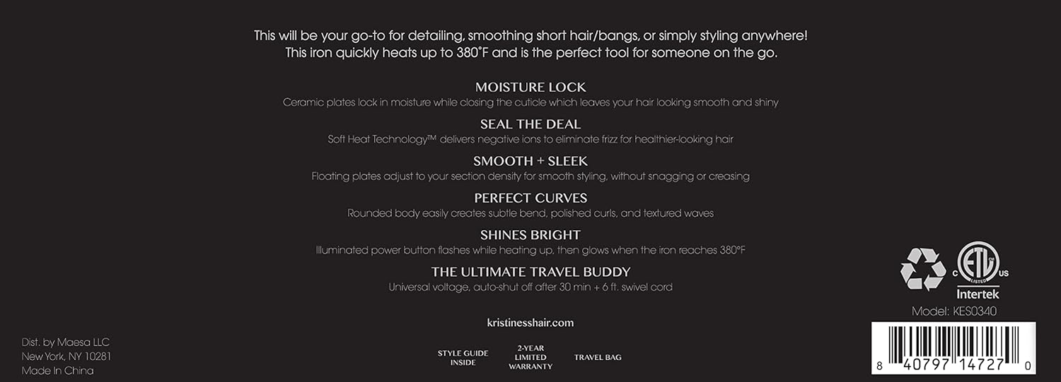 This will be your go-to portable mini hair straightener and curler for detailing, smoothing short hair/bangs, or simply styling when traveling anywhere! This travel iron quickly heats up to 380F and is the perfect small dual voltage tool for someone on the go