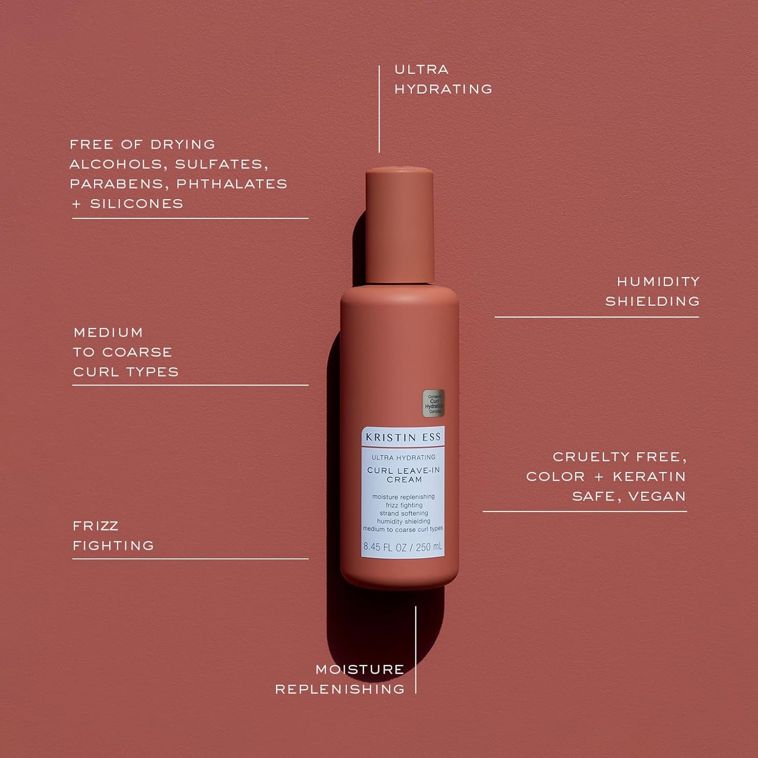 Kristin Ess Hair Ultra Hydrating Curl Leave-In Cream Conditioner For Curly Hair With Frizz Control, Humidity Shielding, Vegan, Color + Keratin Safe, 8.45 Fl Oz (Pack Of 1)